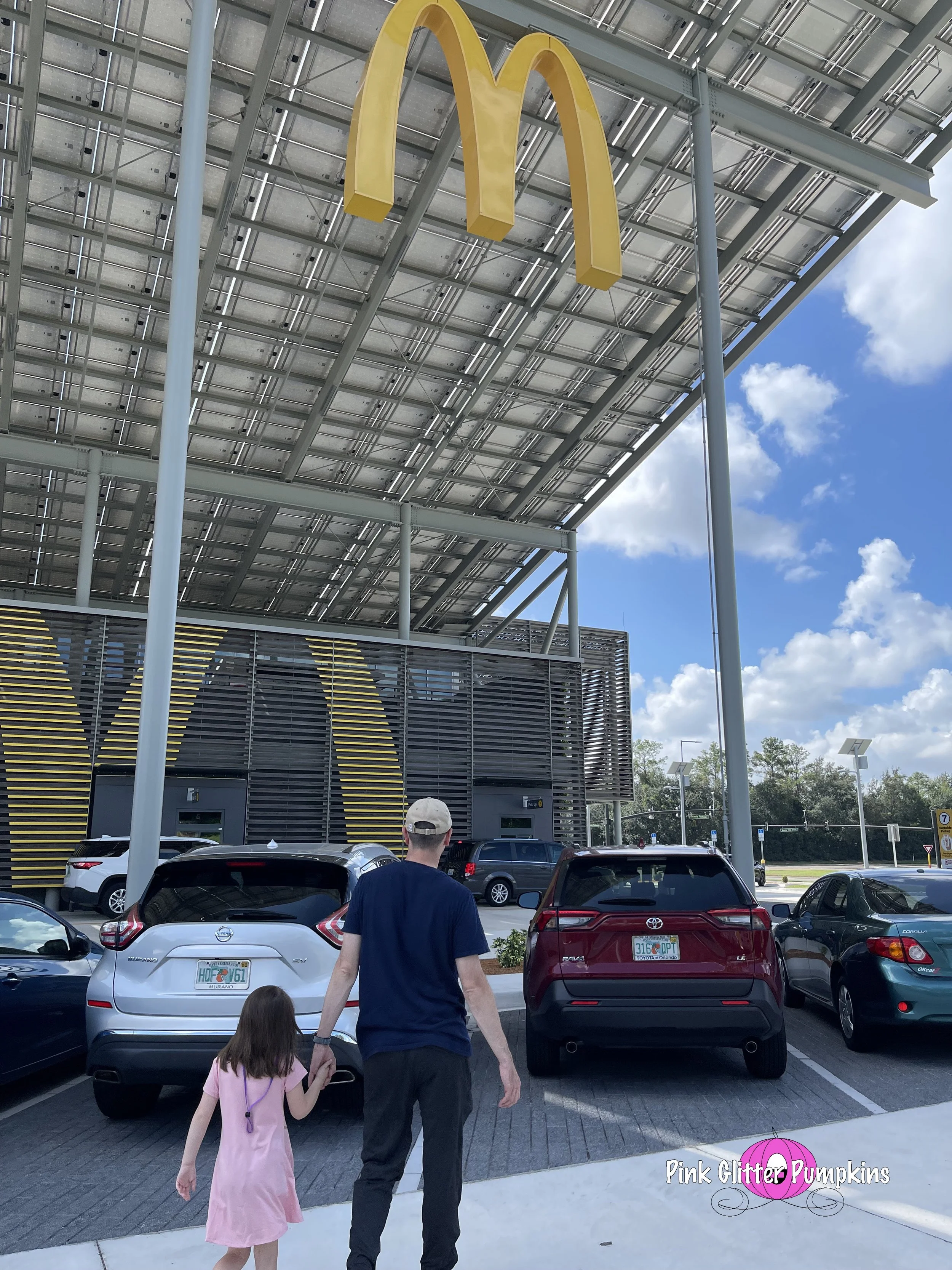 Originally I had planned to eat at Chicken Guy!, but it was now around 11:20, and we were afraid of the lines with the crowds how they were. So we ended up driving over to the McDonald’s on property. Brad had never been there, and they had updated it majorly since I last visited it. We ordered at the kiosk. For such a big store, it is really small on the inside. I was really surprised honestly. It was also pretty dead.