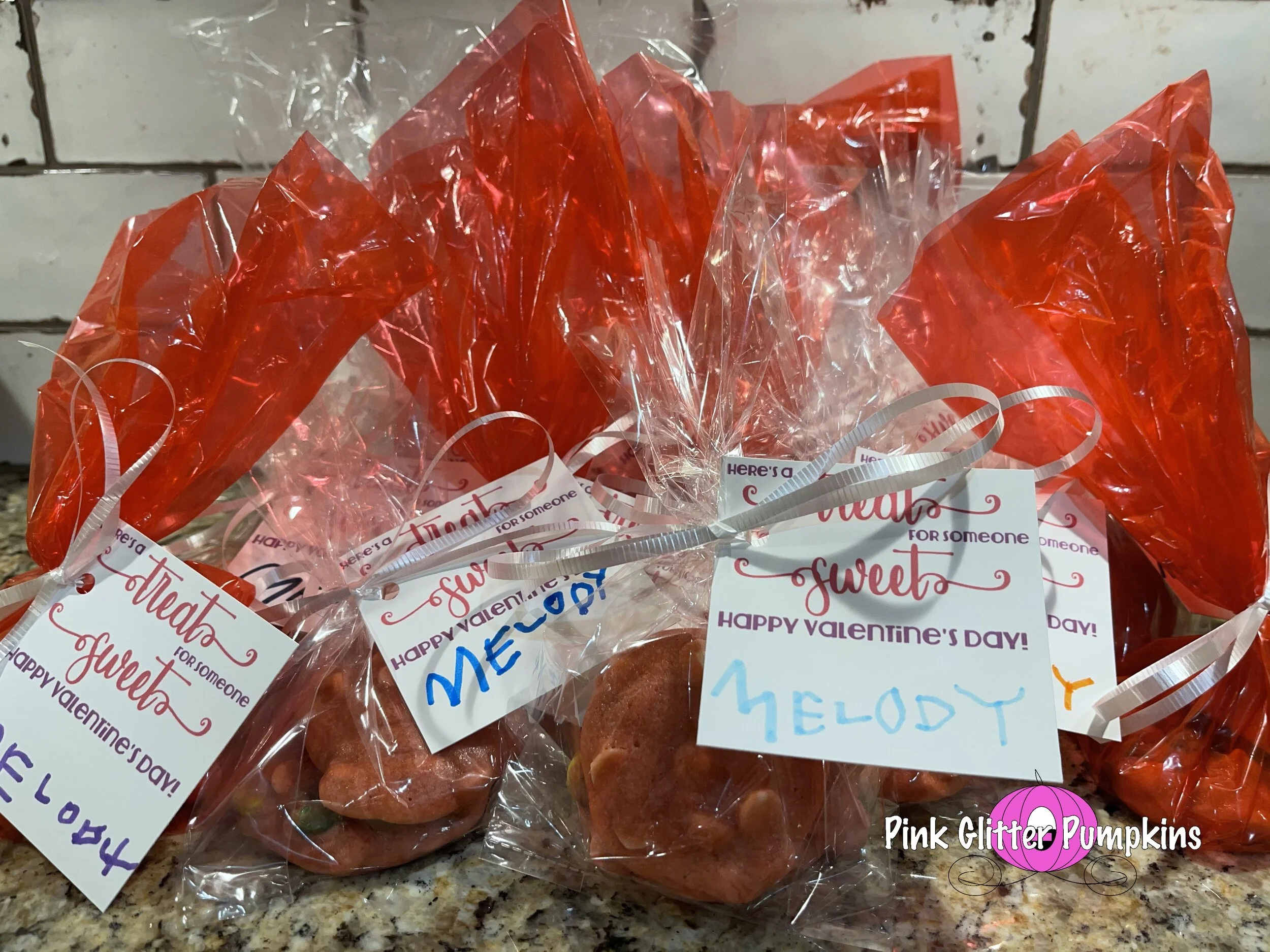 Once they all cooled, I added two per bag. Then I attached the labels with ribbon.
