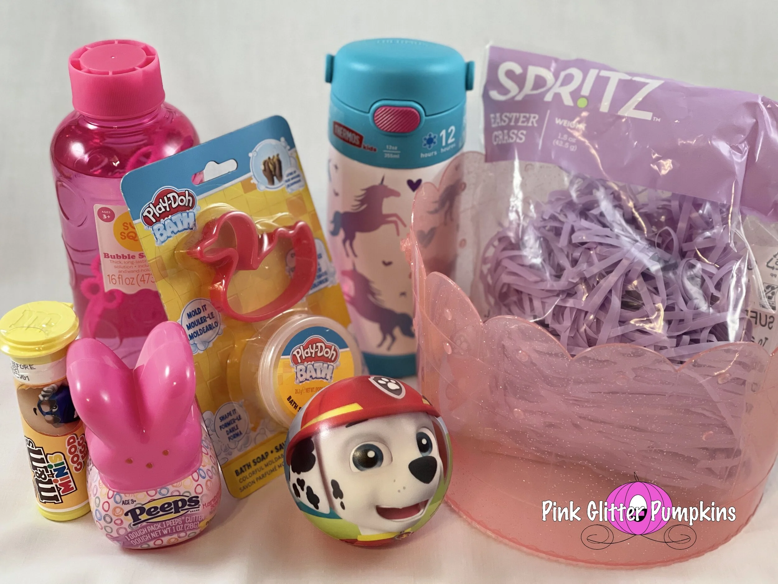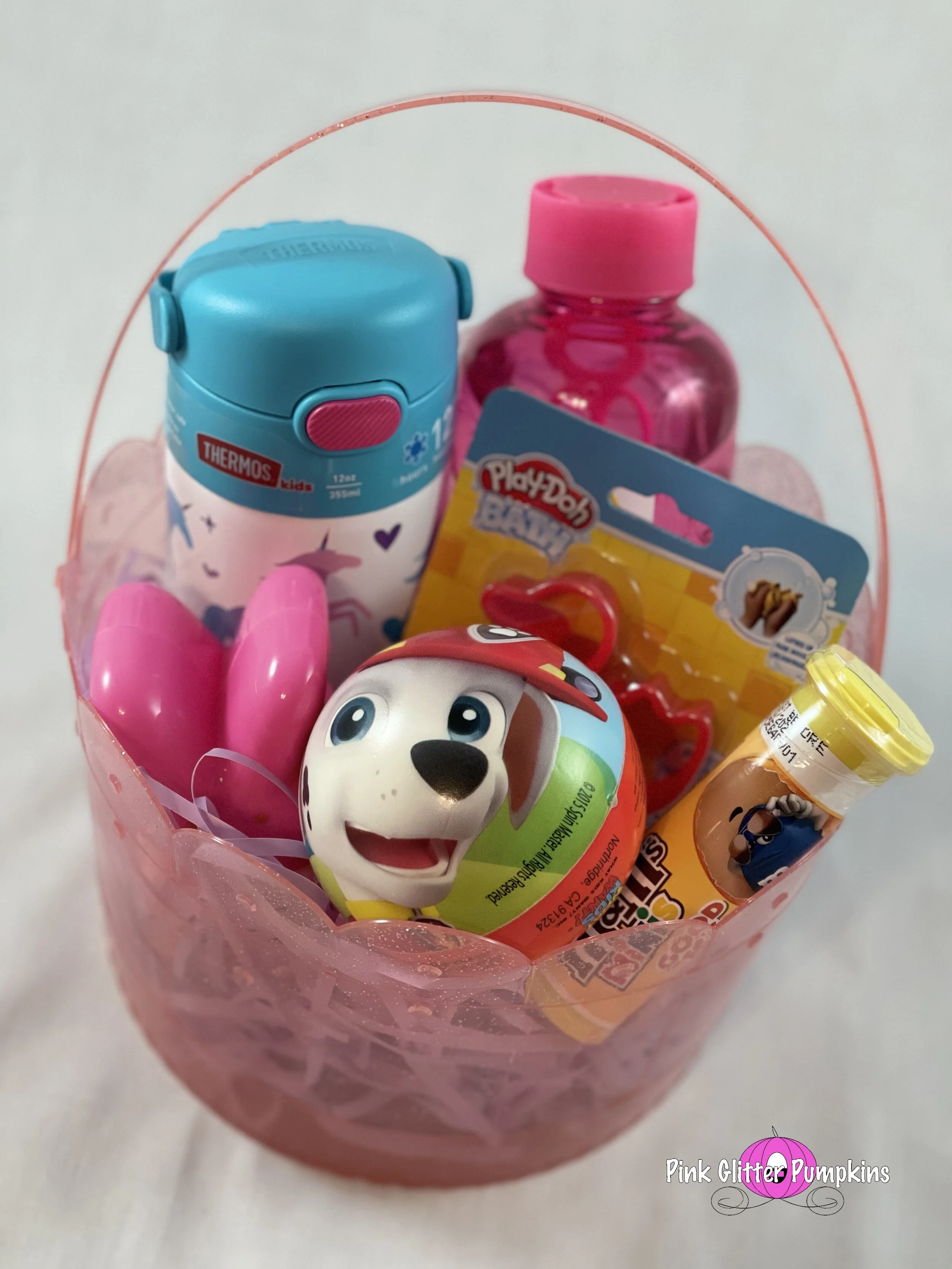 I had grand ideas for both Lydia. I thought about rain boots, I thought about a small wagon, but in the end, I decided to do a simple basket but with a practical “main” gift of a water bottle. It is something all of our kids use daily. So why not find a cute one to give!