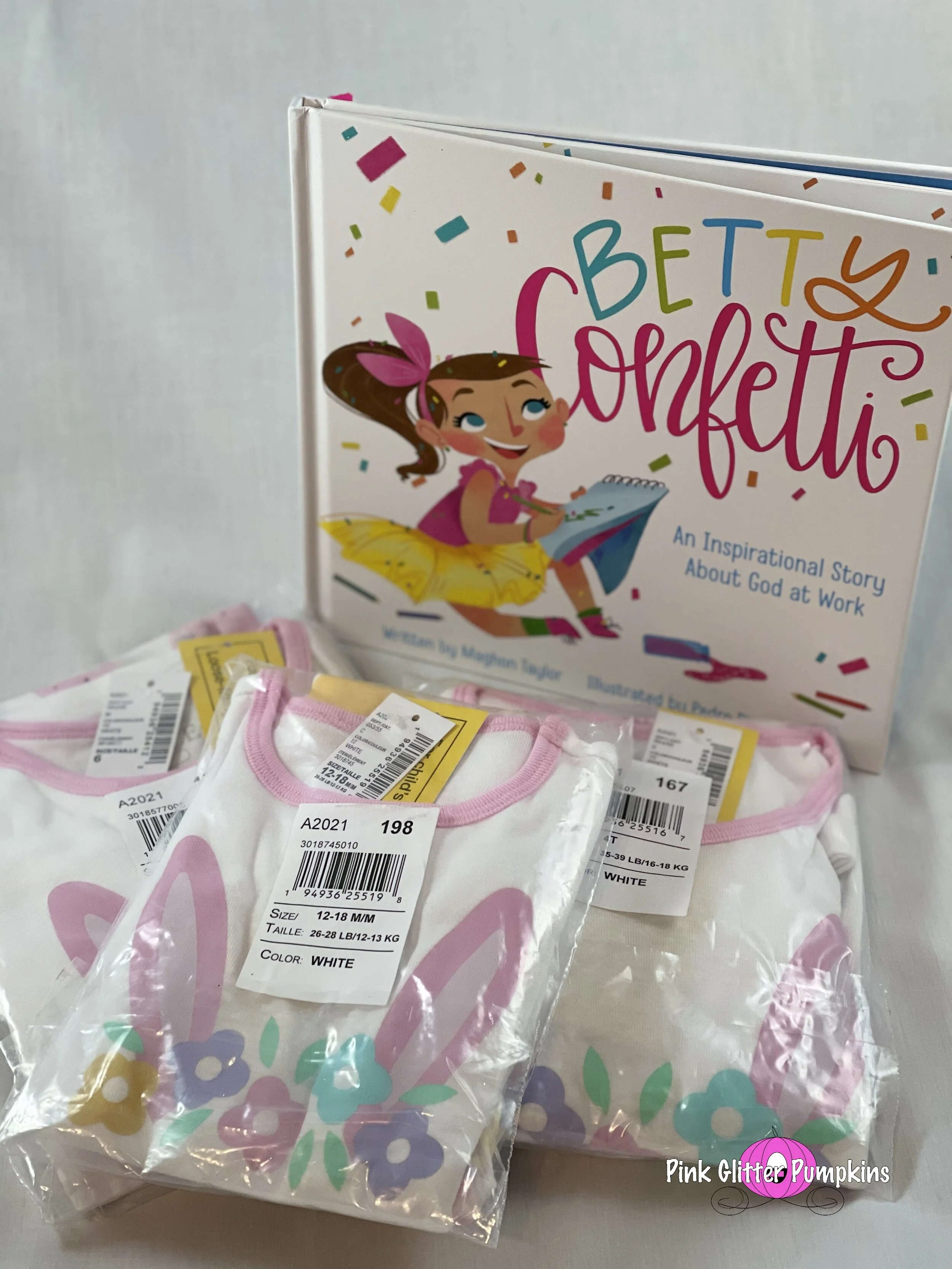 So I didn’t do a basket for my nieces. Instead I bought the three of them matching pajamas, and I also bought a copy of one of Melody’s favorite books, Betty Confetti.