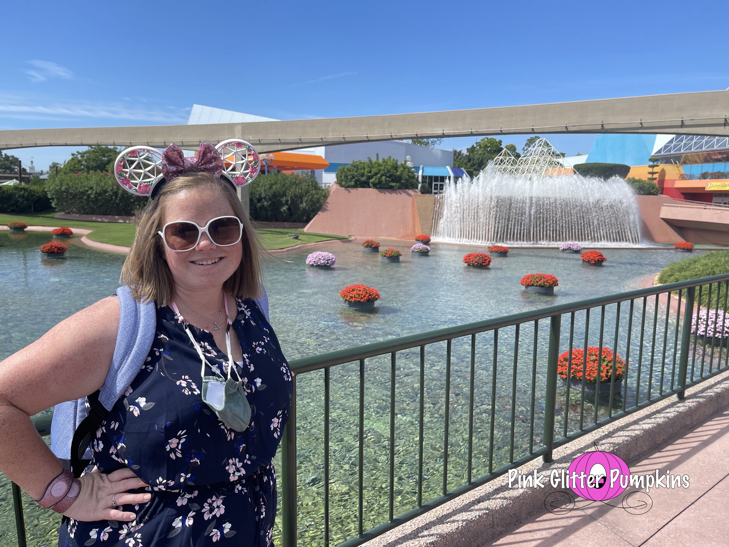 On our walk, I was sure to have Brad snap another picture of me by the fountain at the Imagination pavilion. I try and get one every trip with Brad since our honeymoon, but I haven’t succeeded. First: May 2013 (honeymoon); May 2015 (anniversary trip); February 2019; and May 2021