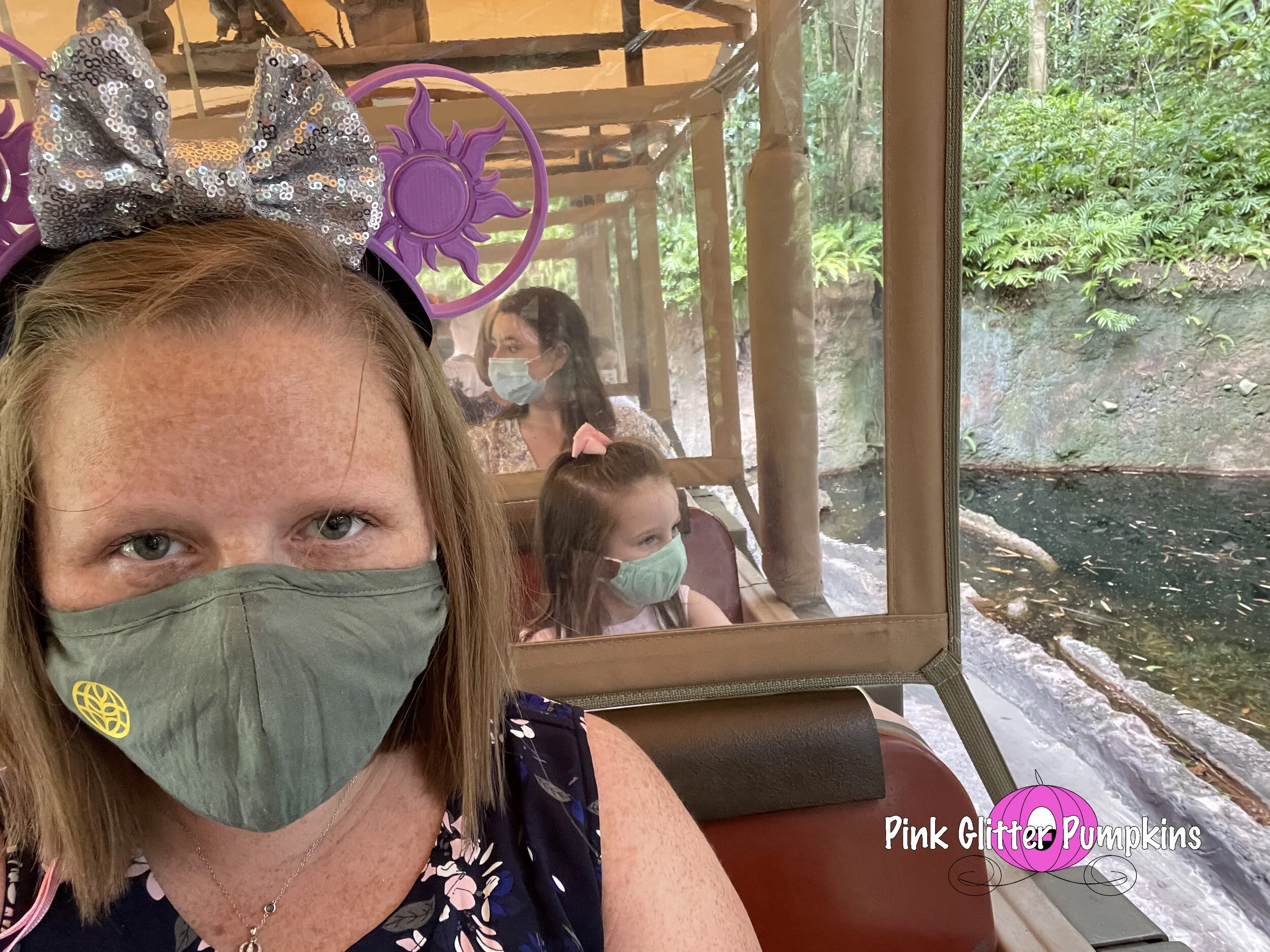 Even on rides, you are still required to wear them. Rumor is you will not get your ride photo if you remove your mask, but I know of people who still got theirs with their masks removed, so I don’t know really. On longer rides, we would hear reminders over the loudspeaker sometimes (i.e Living with the Land, Safari, etc.). I would say most people complied from what we could see though.