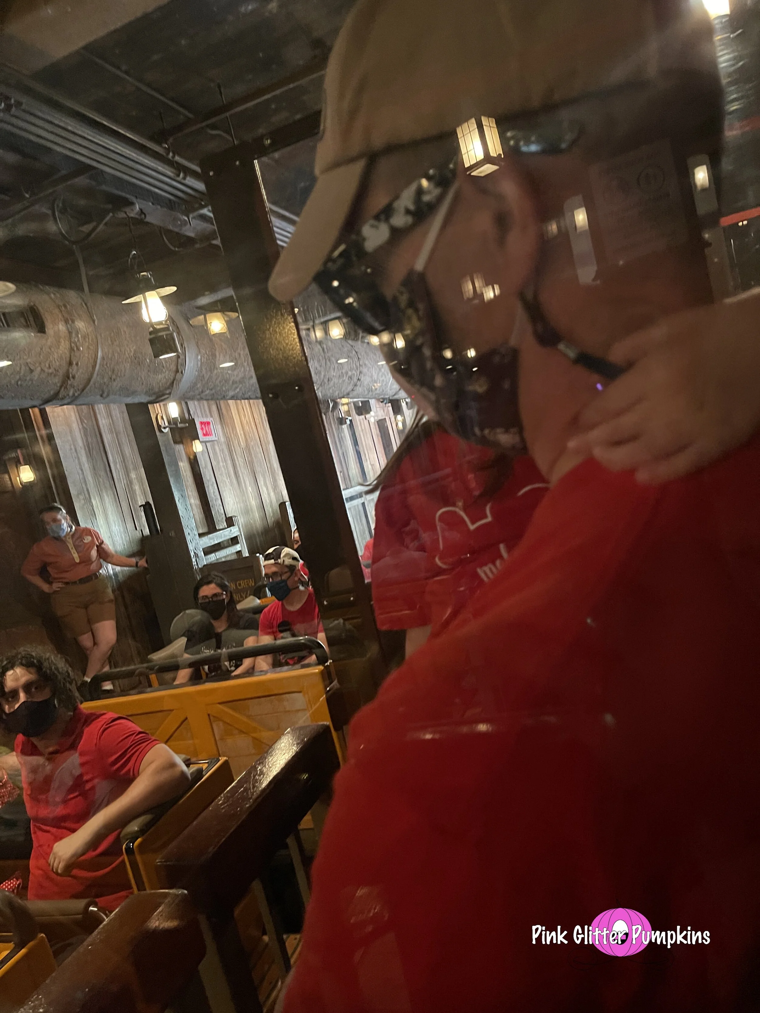 On some rides, they opted to leave some room in between families on rides. For instance, there was an empty row between my mom and I and another family while riding Splash Mountain. This happened on a few rides. While I still don’t think this is effective when you are already disregarding social distancing, this is a much better way to ride a ride vs the plexiglass.