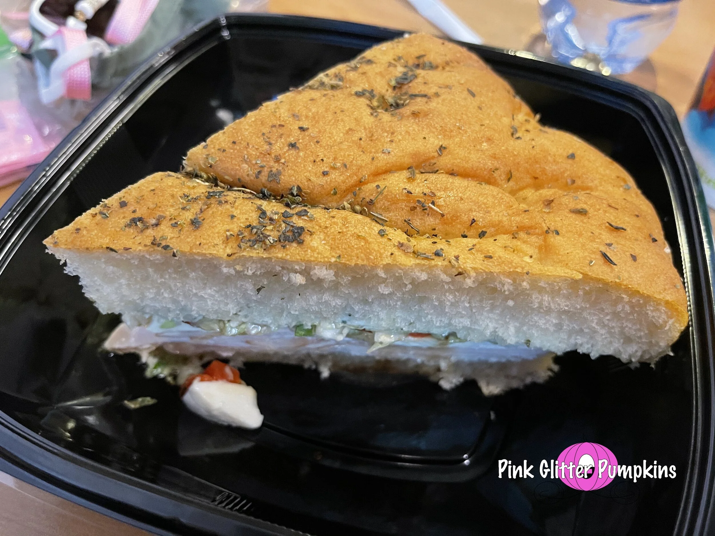 Ok, back to food. So our first night we had the pizza. It was pretty good. Not quite my favorite resort pizza, but it was still better than most. It also came with a salad. I never did eat it, but we did save it in our room in case we got a desire for it. We also bought some green apples with caramel for Melody, but she never ate them. I ended up eating them one morning for breakfast. I also had the turkey sandwich another night for dinner. It was not my favorite by any means. It was edible, and I made due with it, but I would not order it again. It wasn’t fresh which was obvious, and I didn’t love the chunks of mozzarella. I think I was expecting slices or even melted.