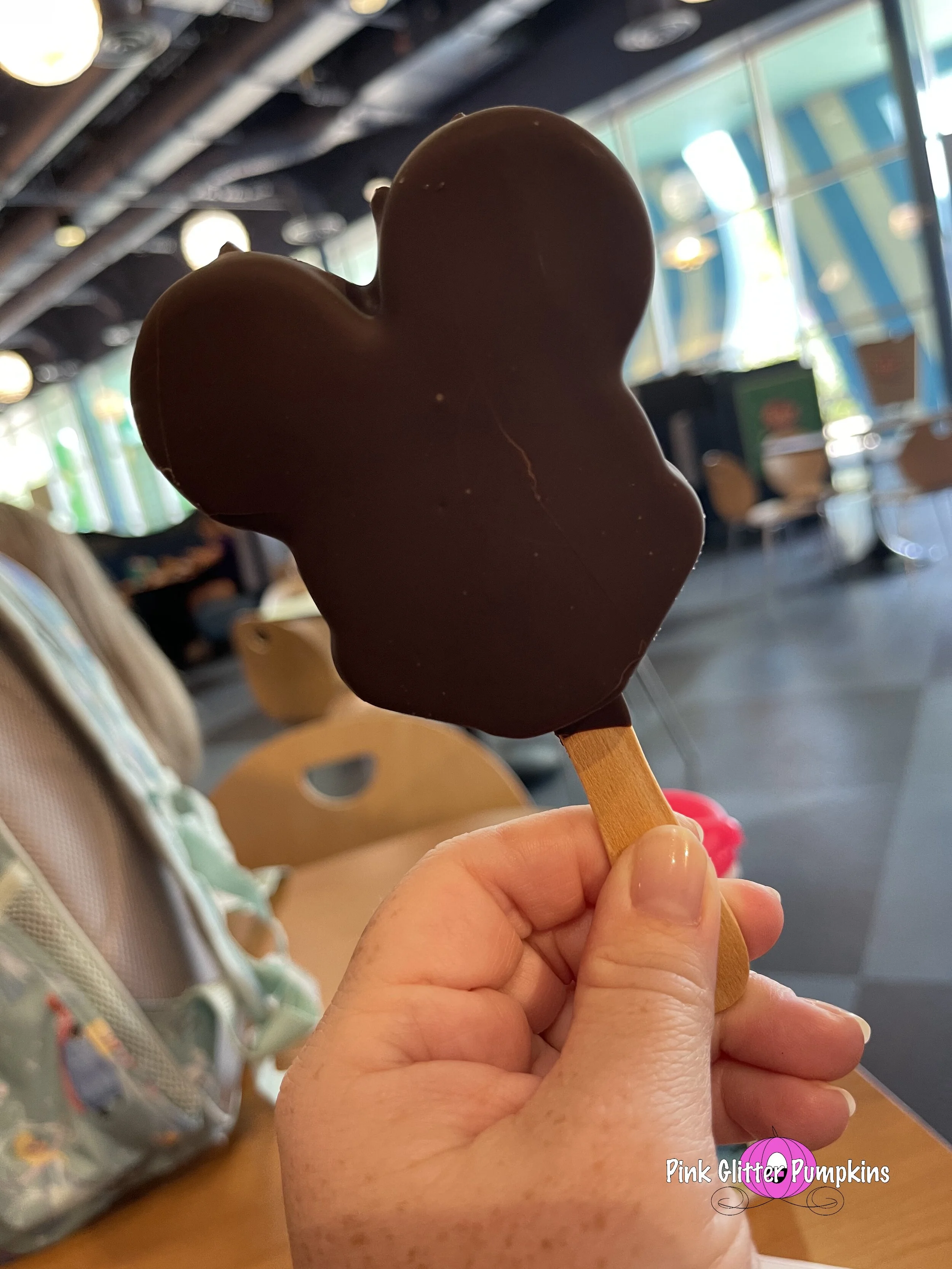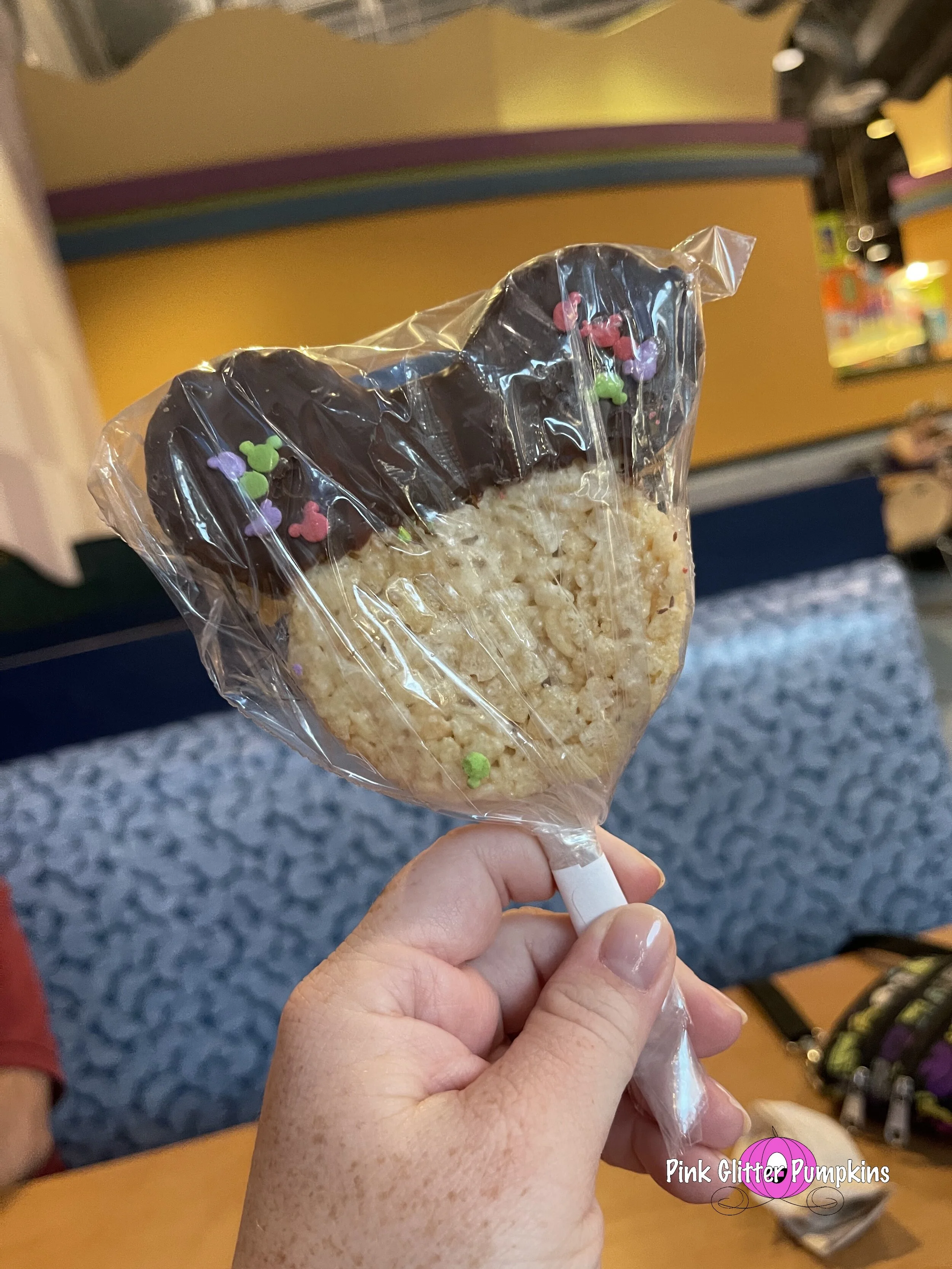 Some of the snacks/desserts we had were the cinnamon roll (decent), apple danish (ok), Mickey bar (just the standard), tie-dye cheesecake (eh, would not get again, but I guess I can say I have had it), Mickey rice krispie treat (stale), and the cookies and cream cupcake (Brad loved).