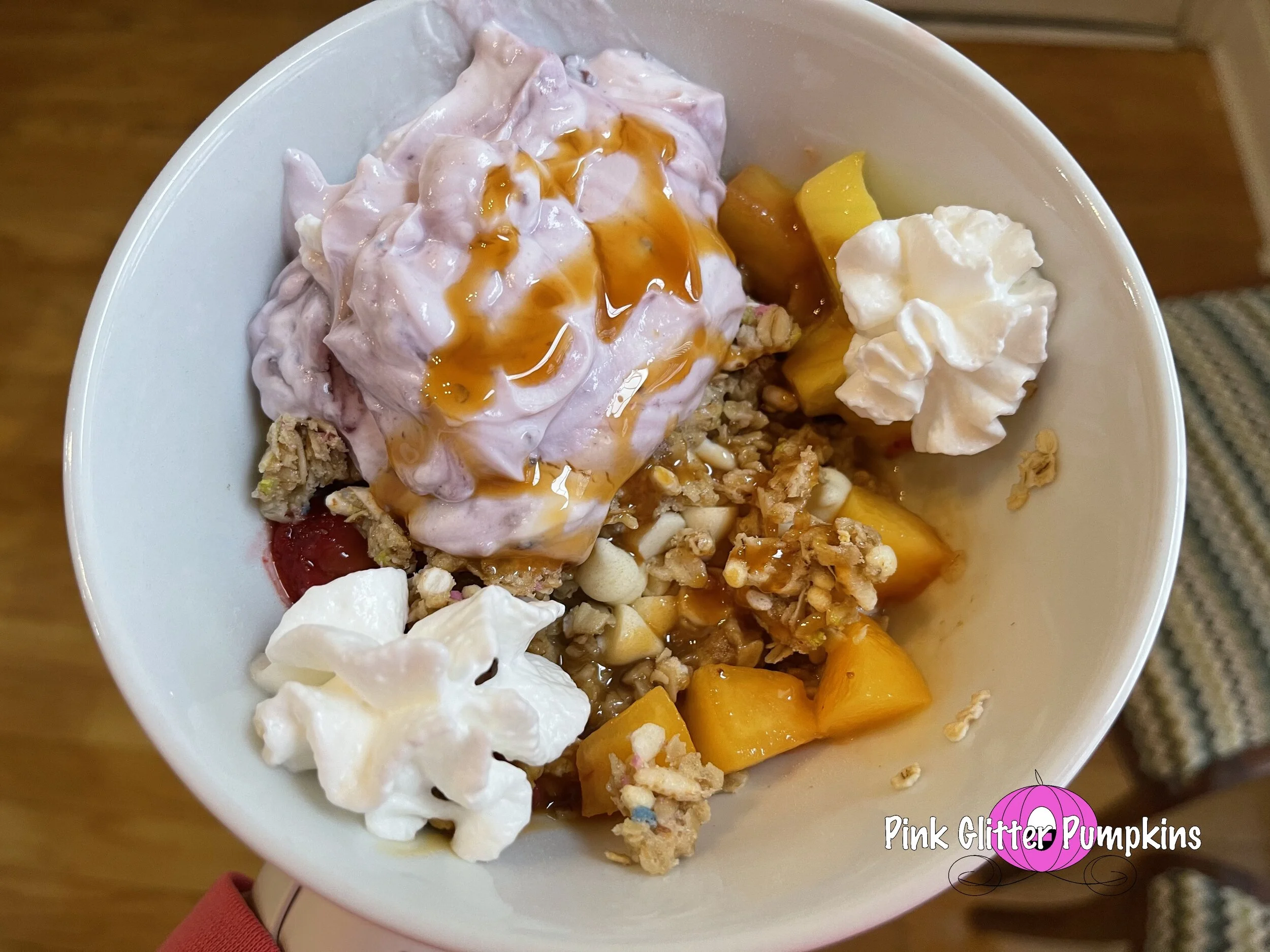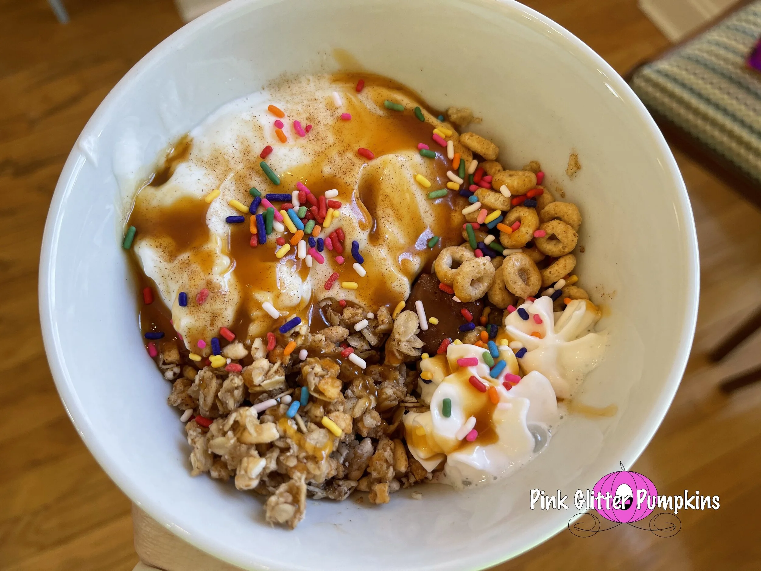 Below are some of my sweeter options without fruit. I use caramel, whipped cream, sprinkles, candy, granola.
