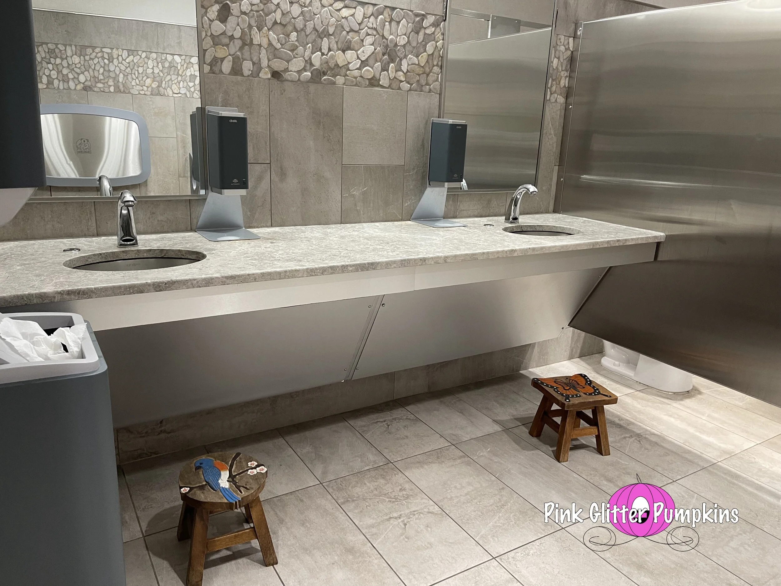 So there are two restrooms that we noticed. One is at the entrance, and one is at the exit. You cannot get to the one at the exit without a ticket (seems obvious, but when looking at a map it may not be quite so). The restrooms were really large and had plenty of stalls. They also have step stools for the kids at the sink which is really nice for the little ones.