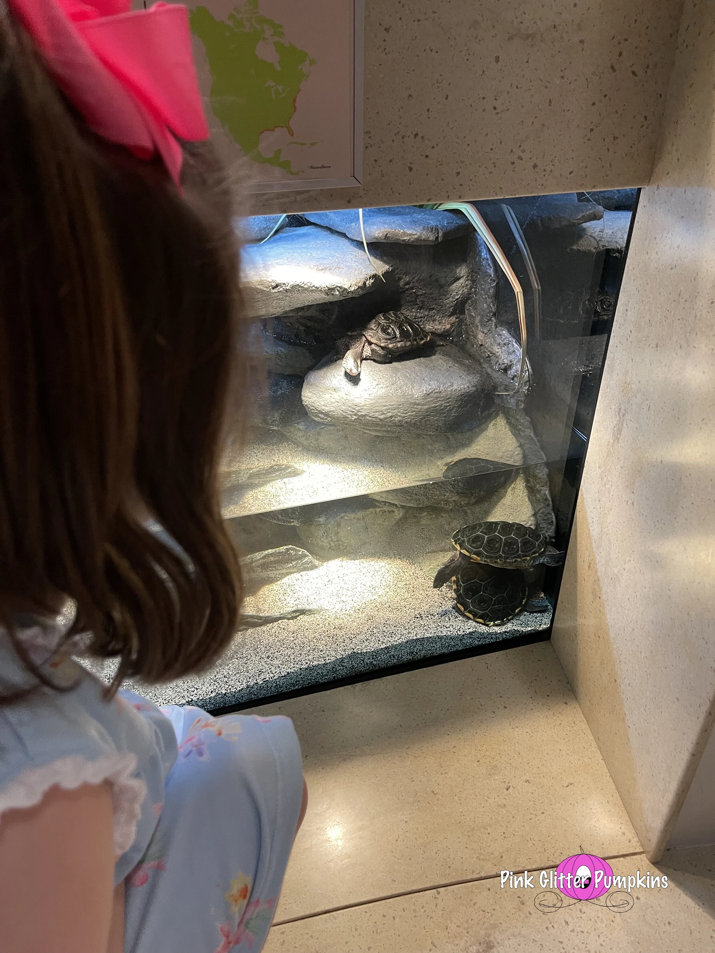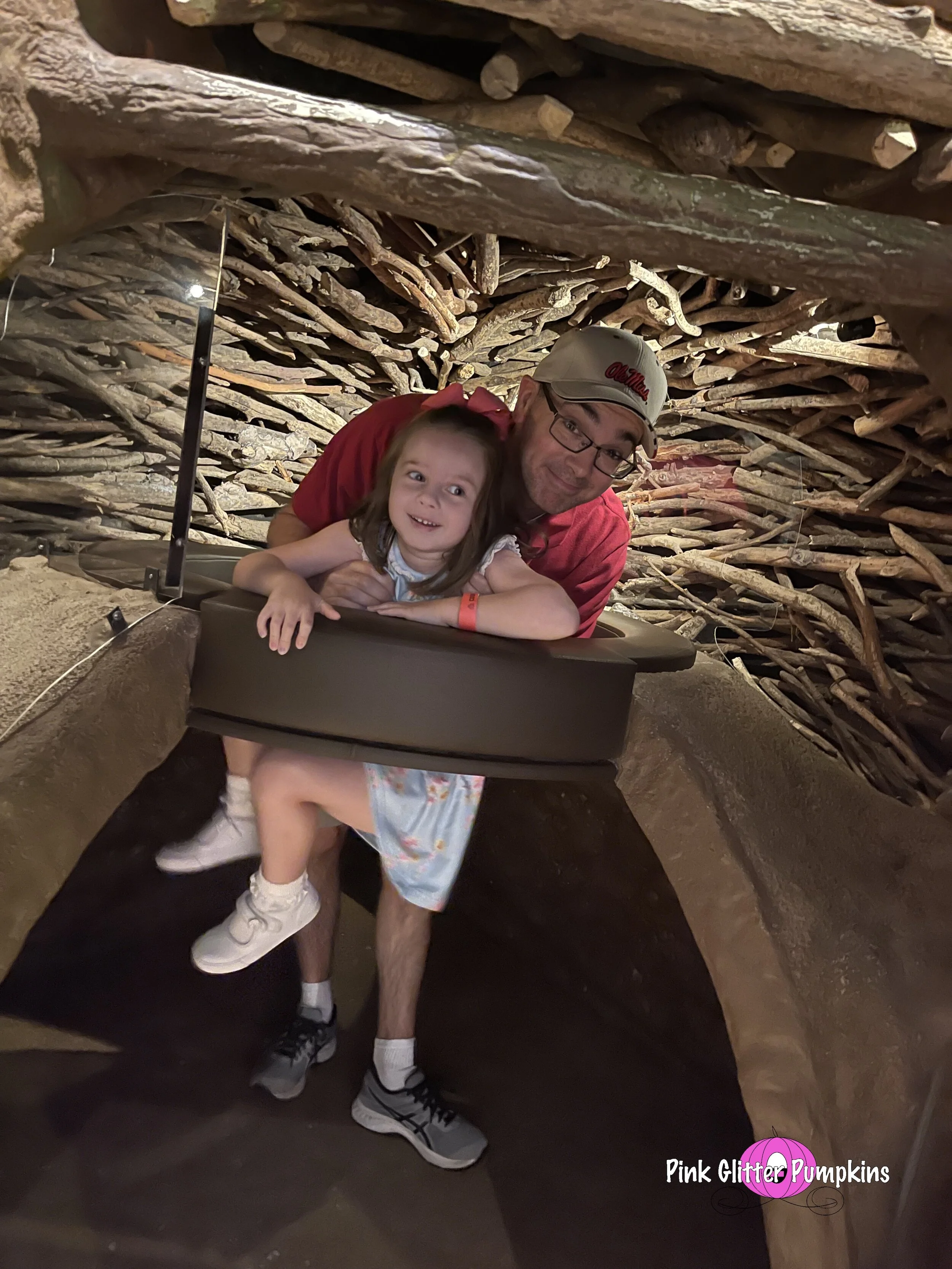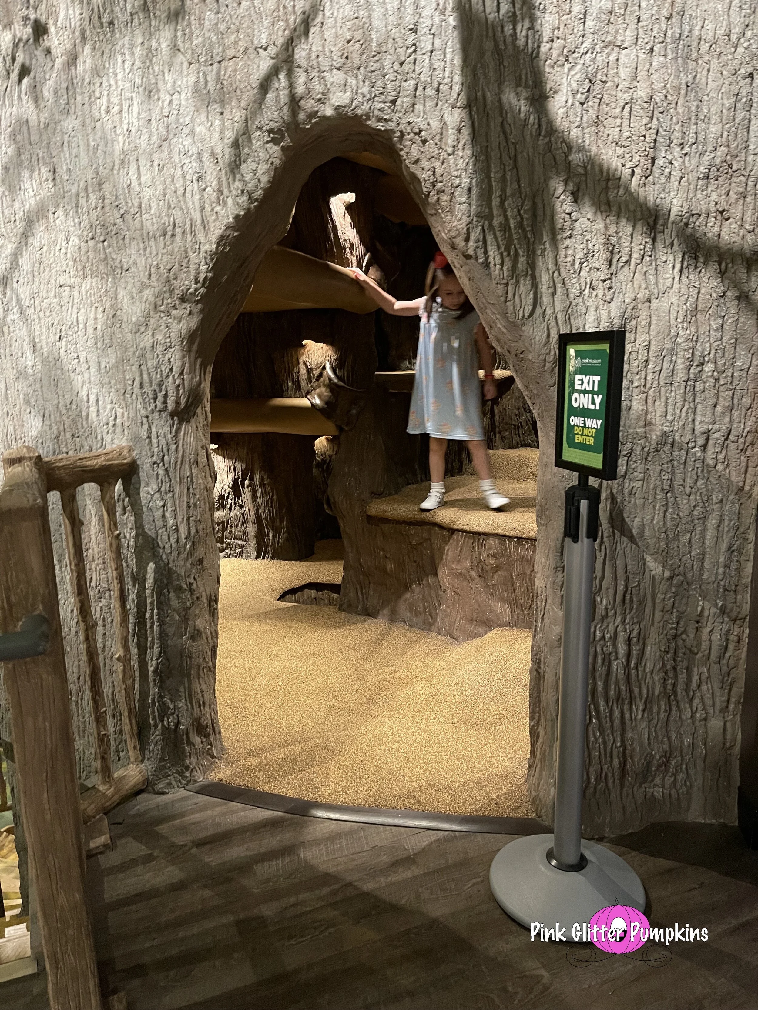 I think I found the space section the neatest myself (“Looking Up”). Melody would have likely really enjoyed it if she could ready and had a greater attention span. The “Foundations” room had a neat interactive section, but I didn’t feel we had a enough time to really understand what we were doing when it came to showing it all to Melody. The lines got really long here, so be advised on that. There was a built in cave section Melody found neat, but it was very short lived. The “Oceans” section was nice with the aquarium. It was a small aquarium but still nice to have live creatures to see. Melody loved the turtle. Melody’s most favorite area was “Forests”. She loved the tree house the most, obviously. But there was also a platform to walk out and see some of the other rooms from atop. There was also a small bridge to view some of the forests. This was the area we returned to after lunch.