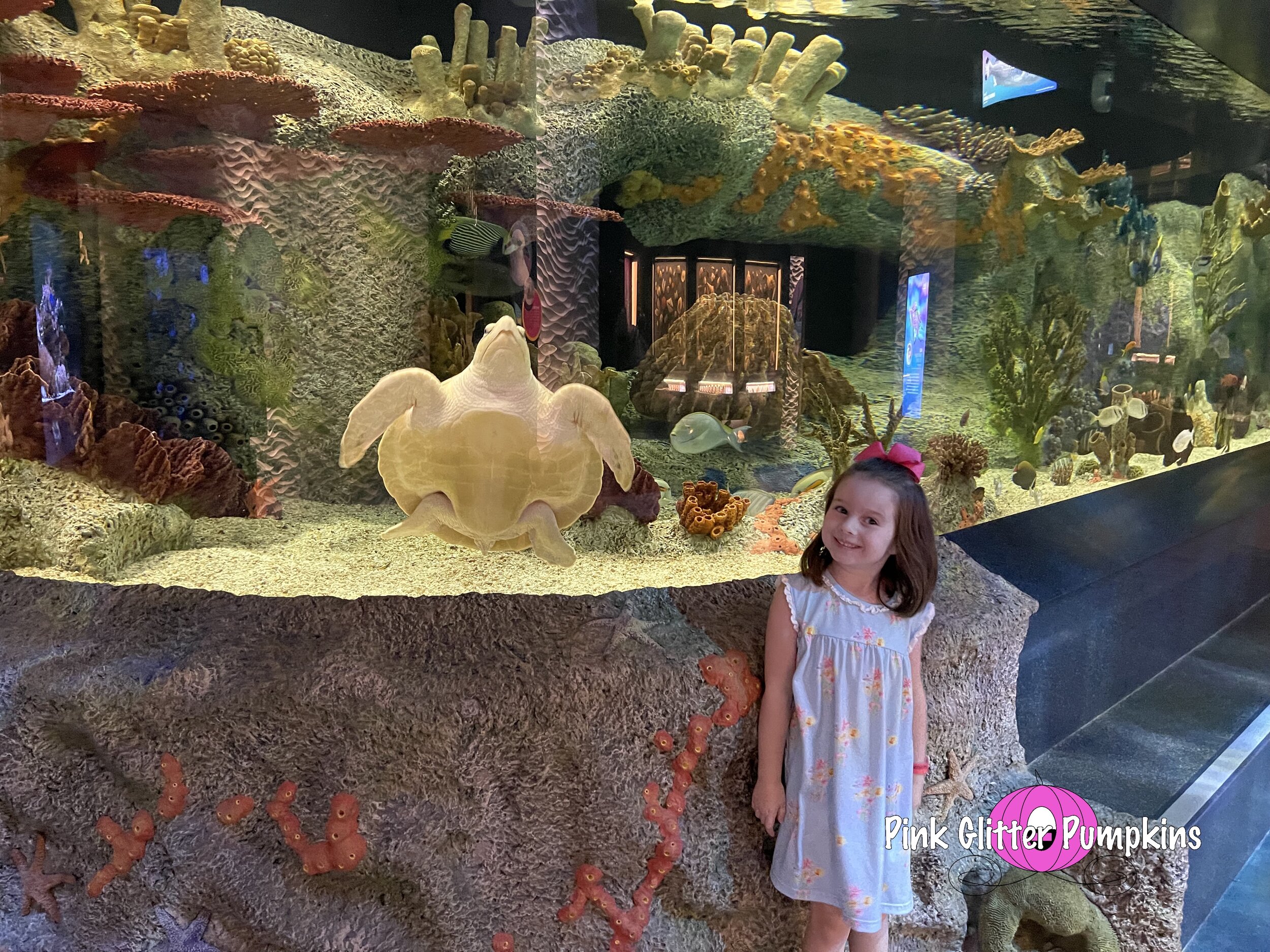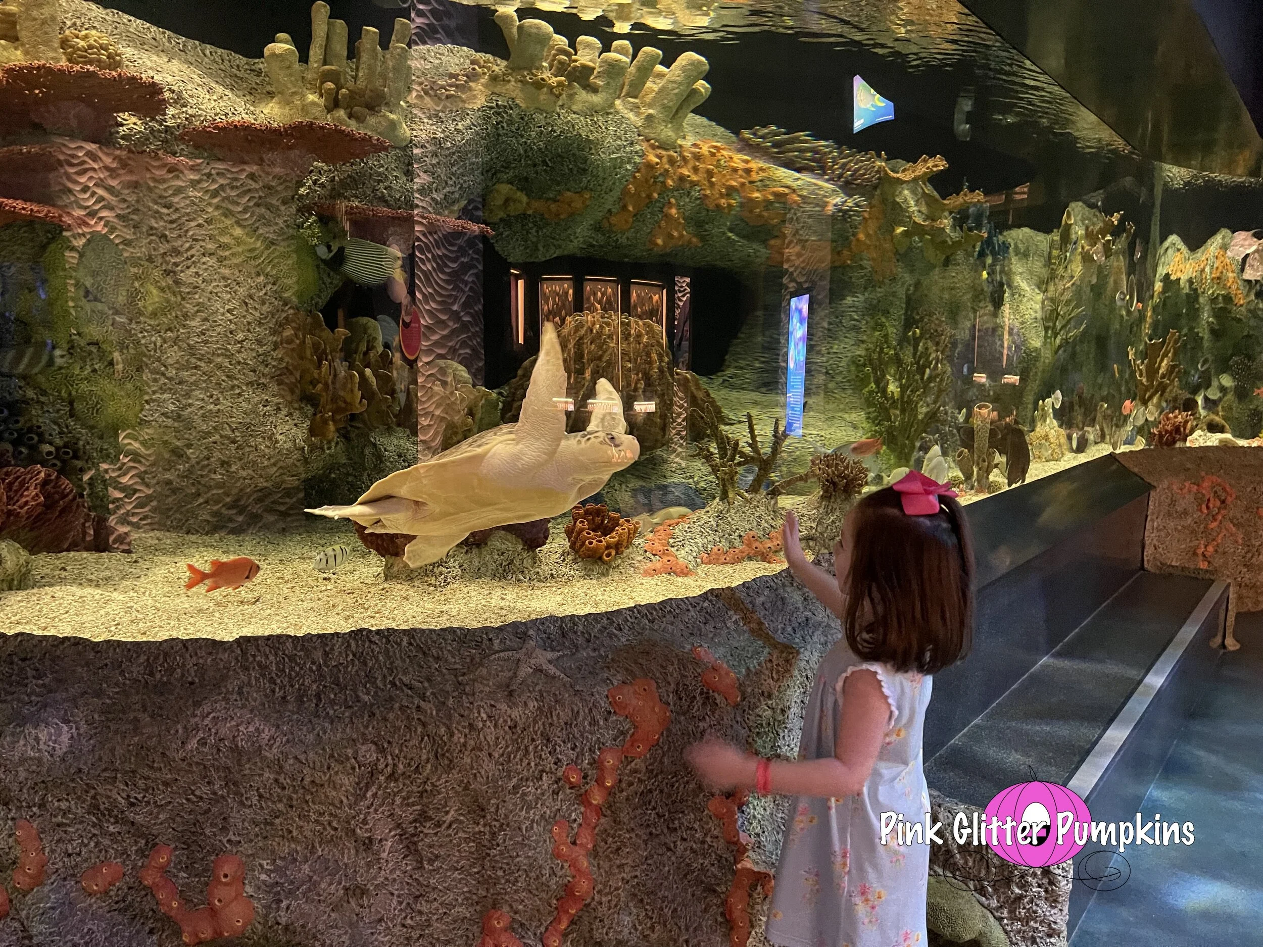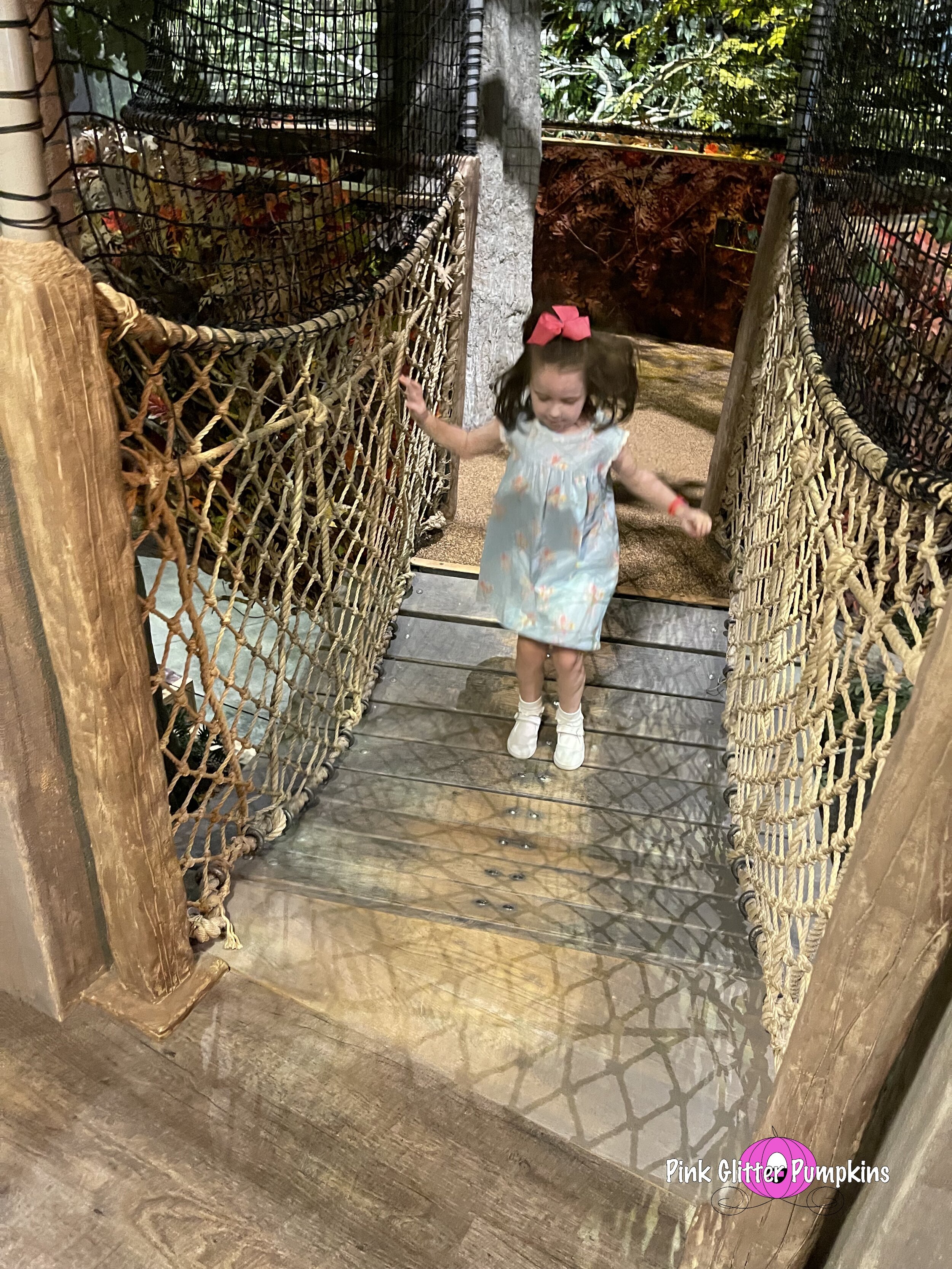 I think I found the space section the neatest myself (“Looking Up”). Melody would have likely really enjoyed it if she could ready and had a greater attention span. The “Foundations” room had a neat interactive section, but I didn’t feel we had a enough time to really understand what we were doing when it came to showing it all to Melody. The lines got really long here, so be advised on that. There was a built in cave section Melody found neat, but it was very short lived. The “Oceans” section was nice with the aquarium. It was a small aquarium but still nice to have live creatures to see. Melody loved the turtle. Melody’s most favorite area was “Forests”. She loved the tree house the most, obviously. But there was also a platform to walk out and see some of the other rooms from atop. There was also a small bridge to view some of the forests. This was the area we returned to after lunch.