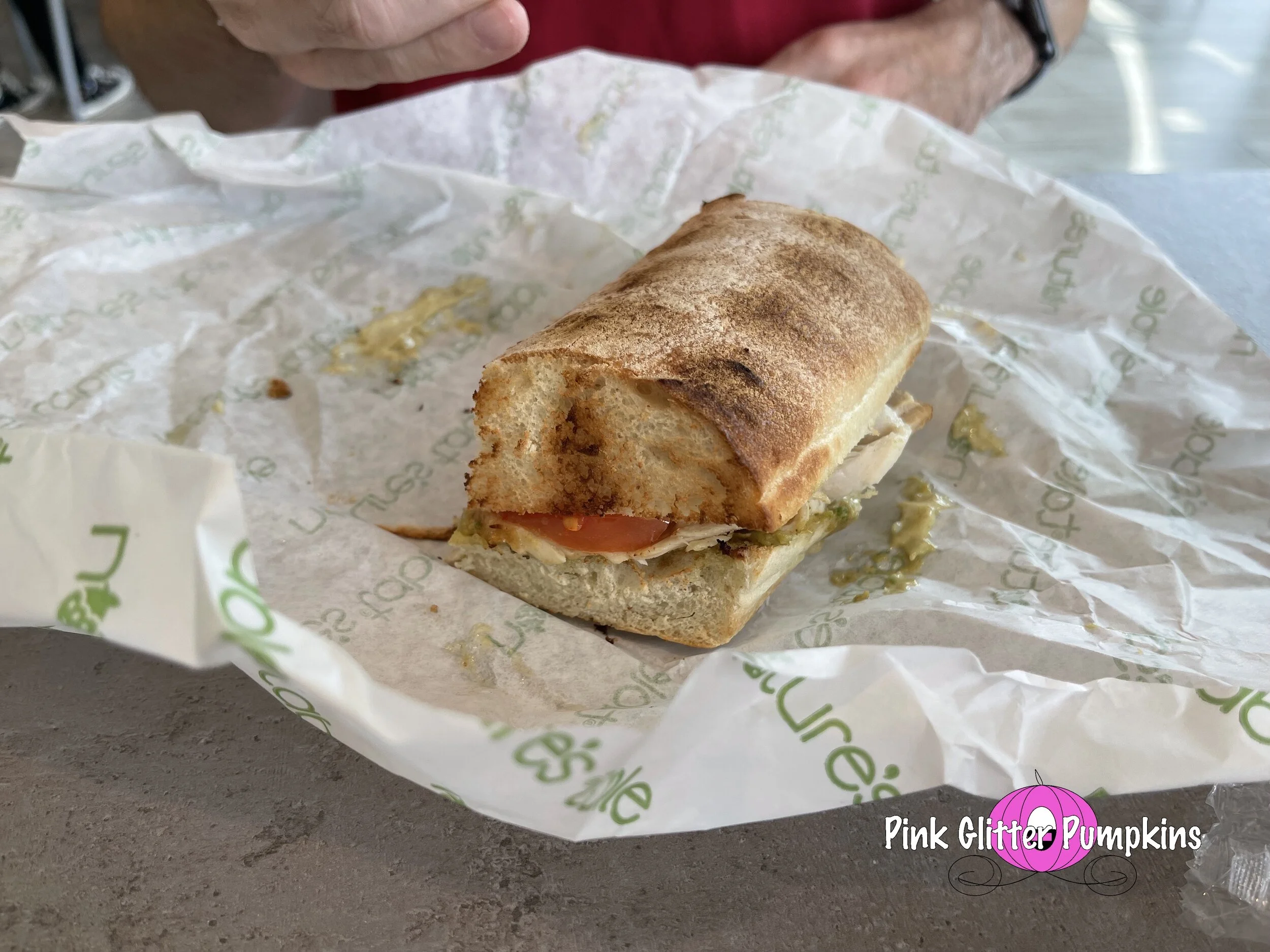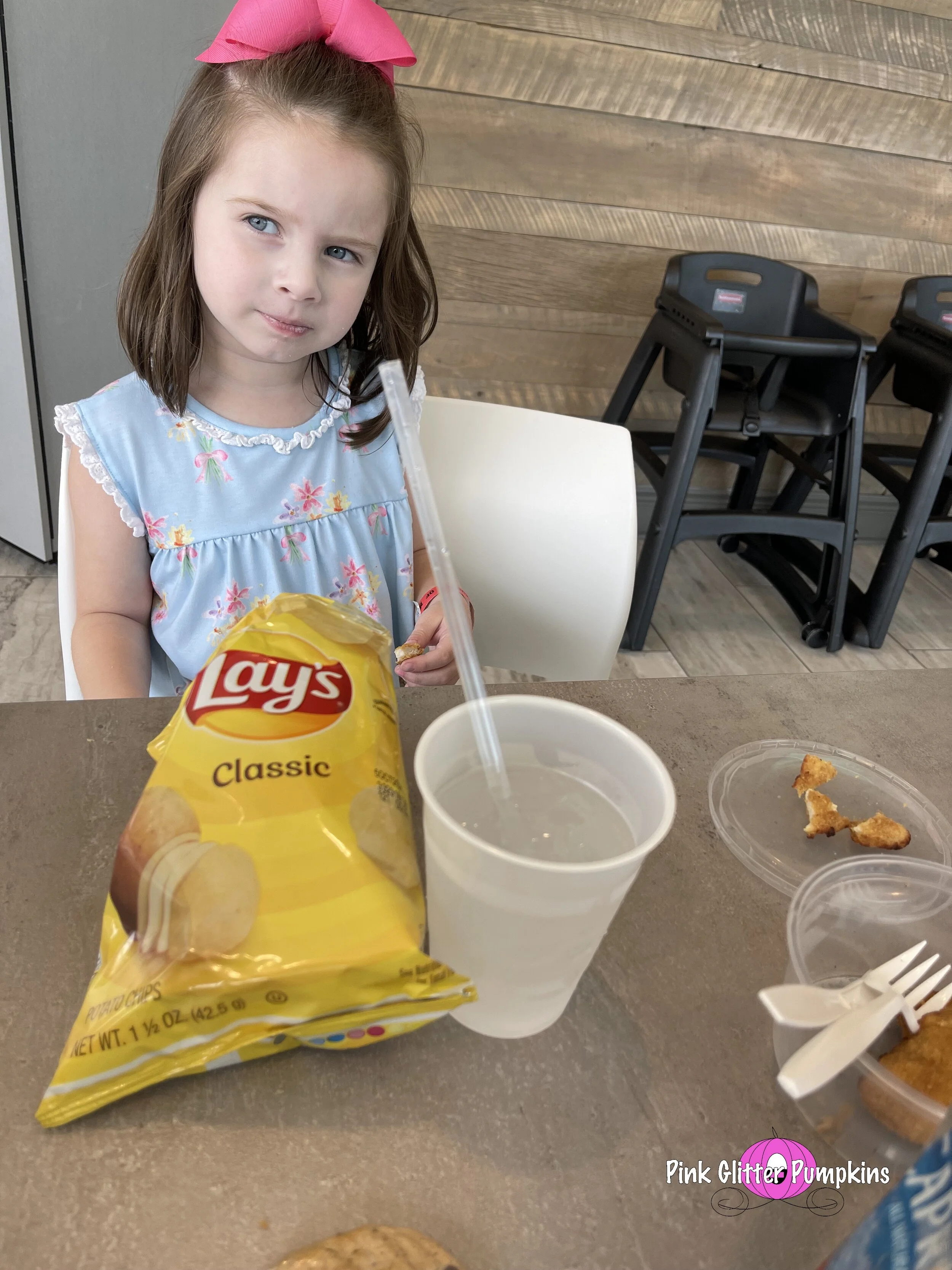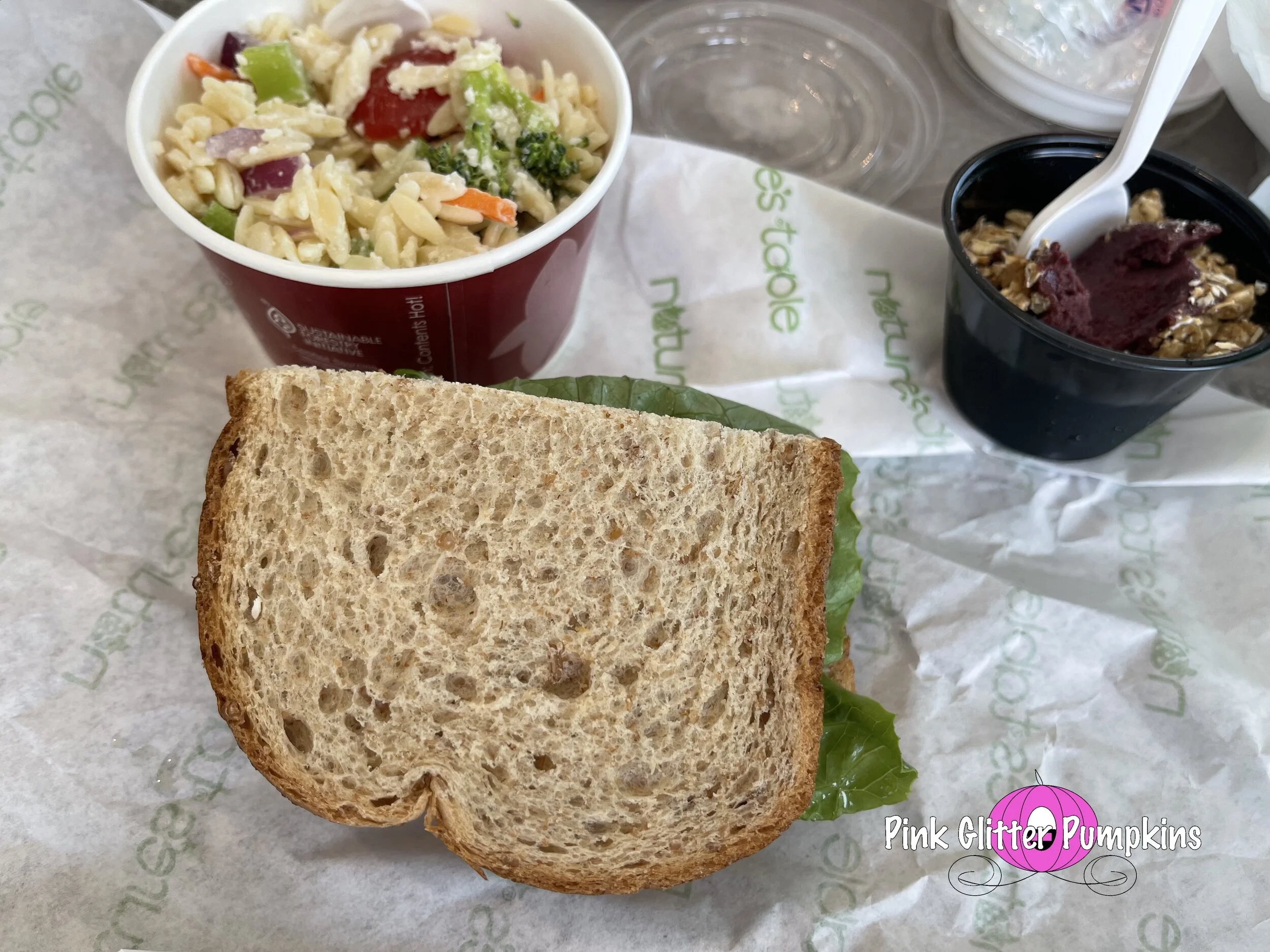Brad got the Baja Turkey Jack Combo. The sandwich was interesting with the avocado jalapeño mayonnaise. Neither of us particularly cared for it, but Brad said it was edible. It wasn’t bad, but the mayo was just a little different for our taste. I got the mix it up combo. It came with a 1/2 sandwich or wrap, the featured soup or salad, açaí scoop or cookie, and fountain drink. I opted for the tuna salad sandwich, the featured salad (which was some sort of orzo thing), and an açaí scoop with granola. All of my food was really good. The salad was interesting, but I really liked the vegetables in it. The sandwich was really good and not crazy tasting with the tuna. If you eat tuna, you know it can be either good or bad depending on the mayo and add ins places incorporate. And I was surprised by the açaí scoop. I had never had it before, and I really enjoyed it. Melody got the kid’s chicken tenders with chips and a cookie. The chicken was actually decent. I believe it was baked or air fried as I didn’t see any actual friers there.