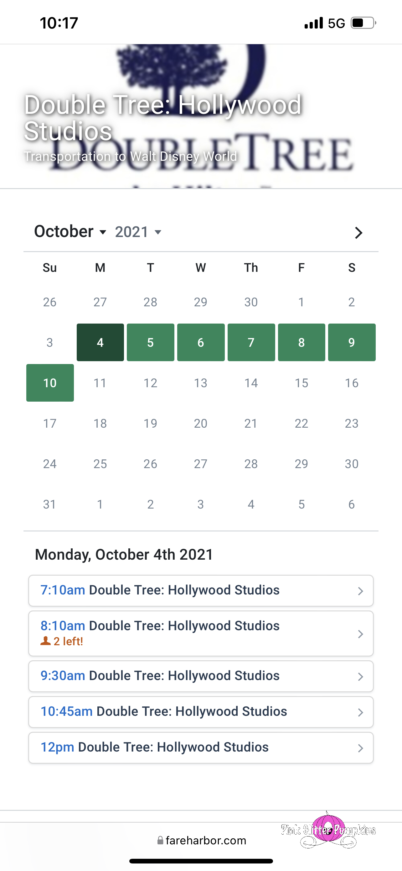 Times were already sold out before we arrived. Since we did not know about having to book our transpiration online, we could not look prior to the day before we needed it. Well immediately we found we would either get to Hollywood Studios an our before the park opened or an hour after it opened. The 8:10 time slot was gone. Same happened for a few other parks during our trip.