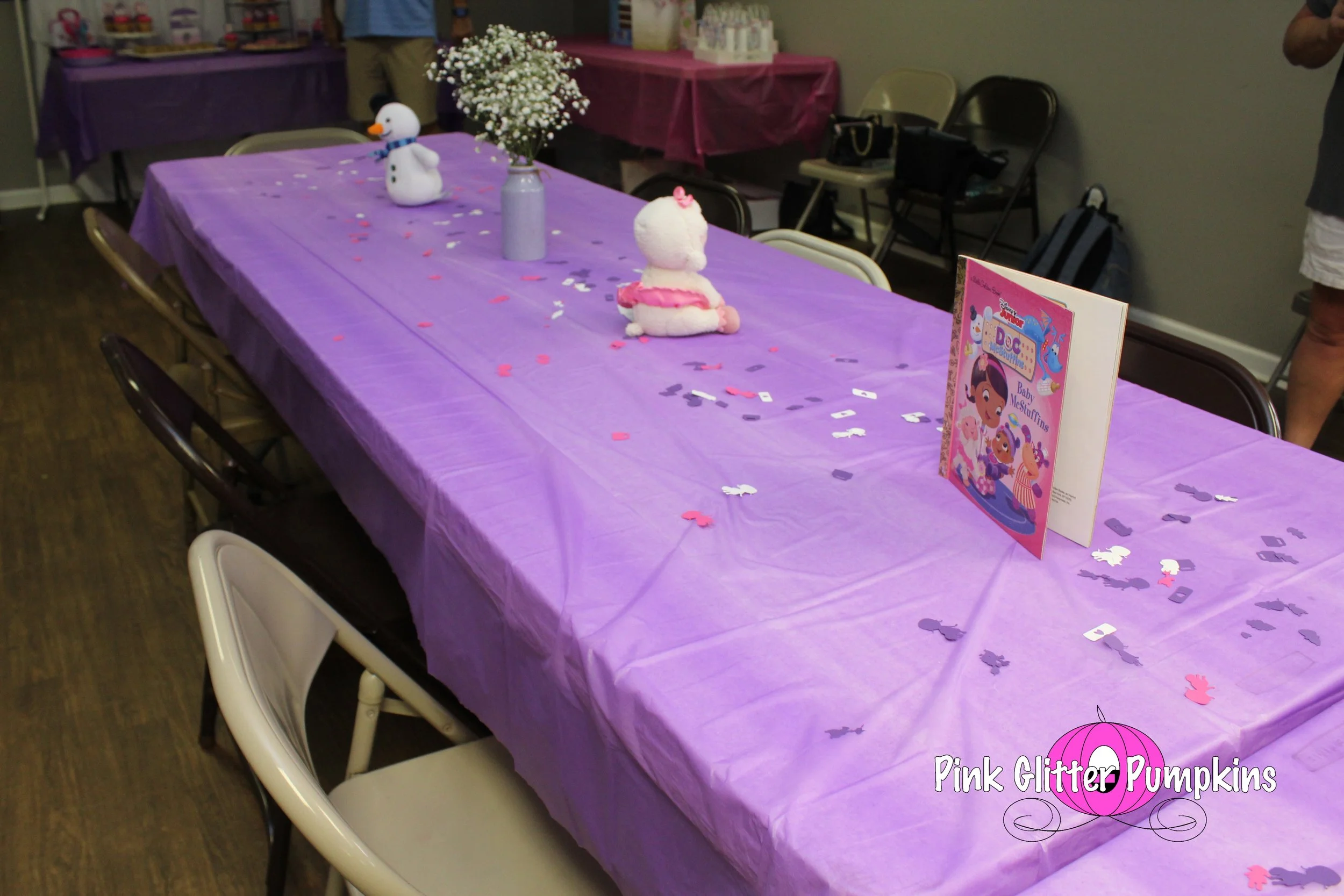 The decorations for Melody’s 6th birthday party were fairly easy to do. The theme Melody picked was Doc McStuffins. I mostly used toys and books Melody already had, so I only had to really buy tablecloths and cardstock!