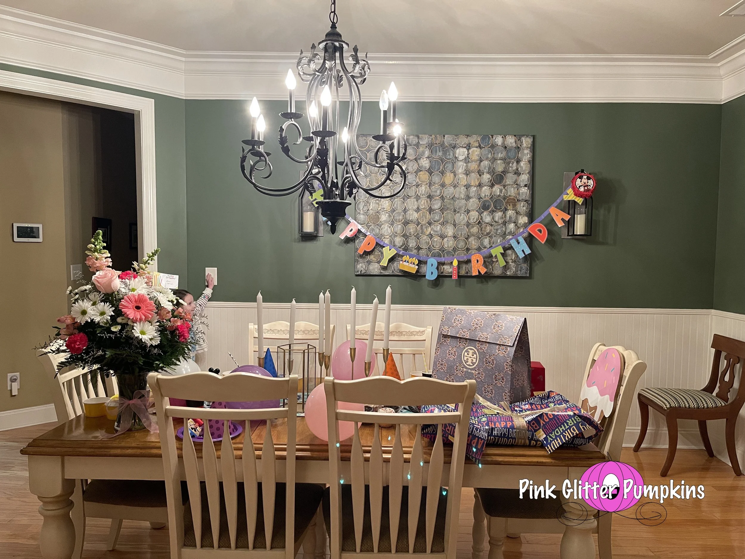 Melody wrapped her present for me since it came in after Brad left. Then with the help of my mom, she decorated our dining room.
