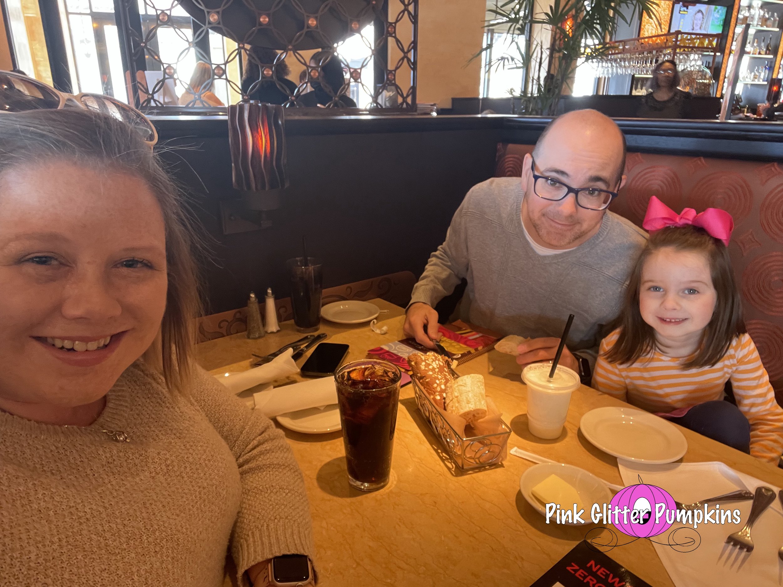 Once Brad got home, we scheduled a reservation at The Cheesecake Factory. We got one a few months ago, and we just have not made it over there until now. Aside from Melodyβs stomach ache, it was quite delicious and fun. Melody even wore makeup for the occasion.