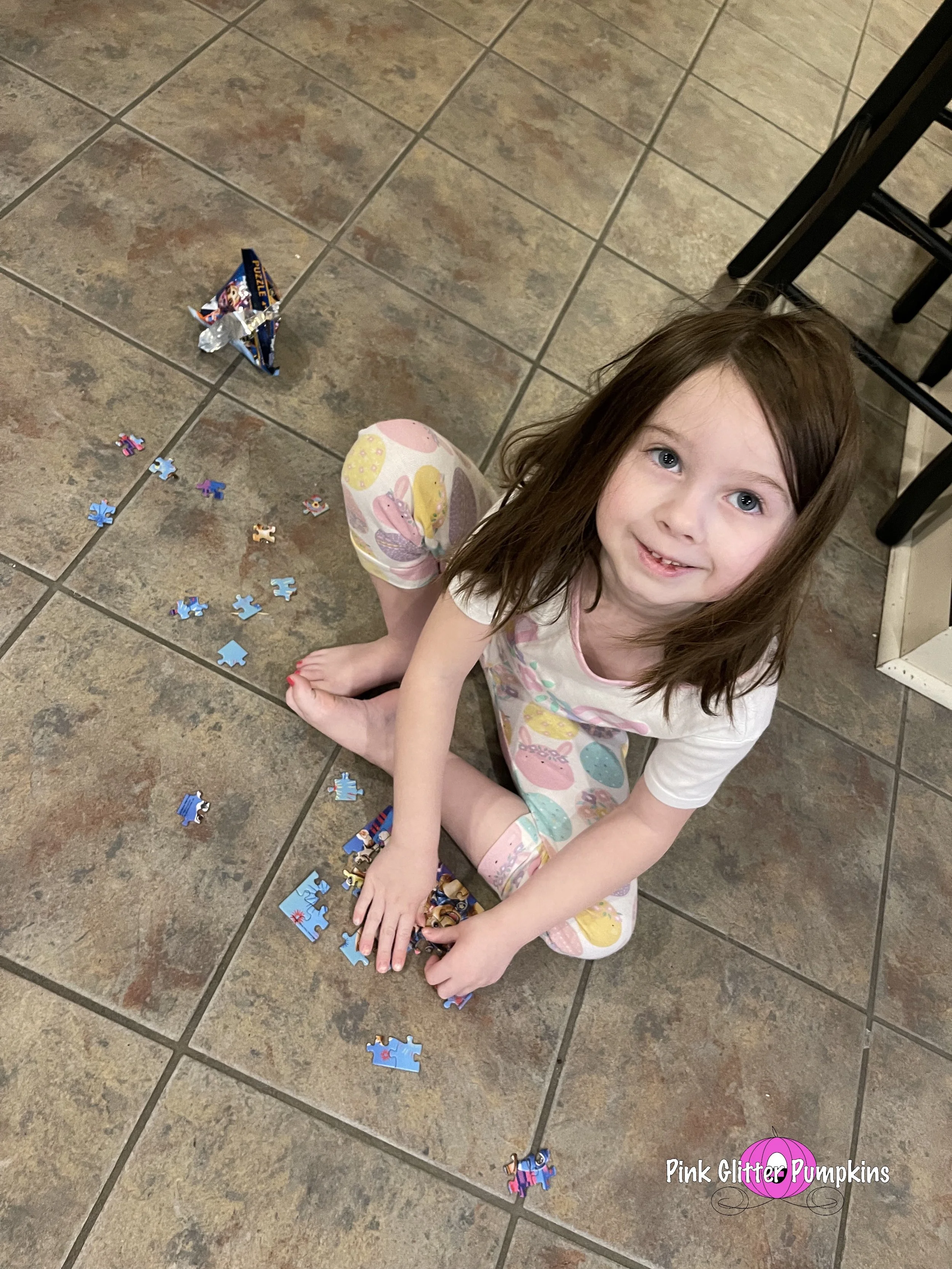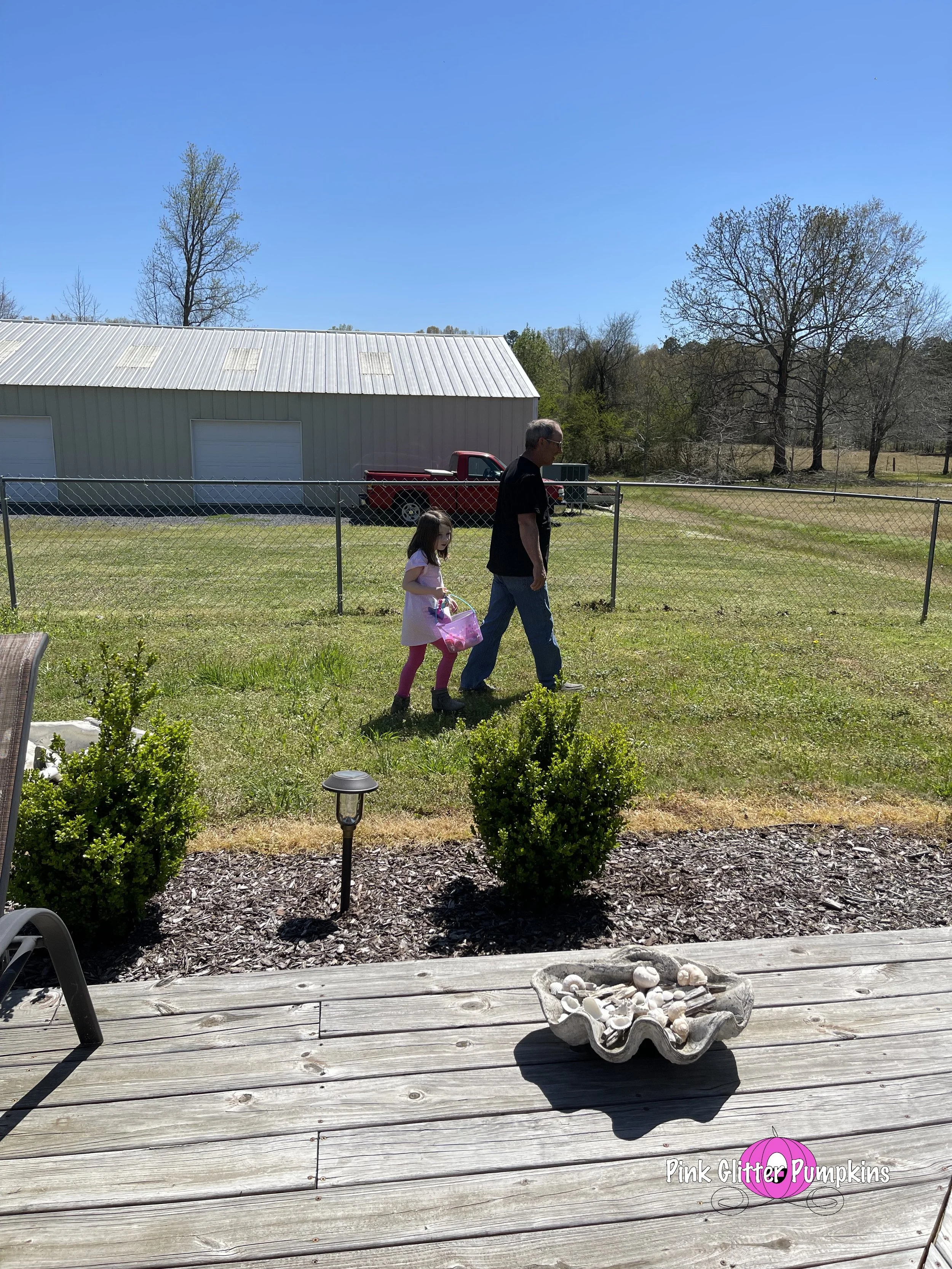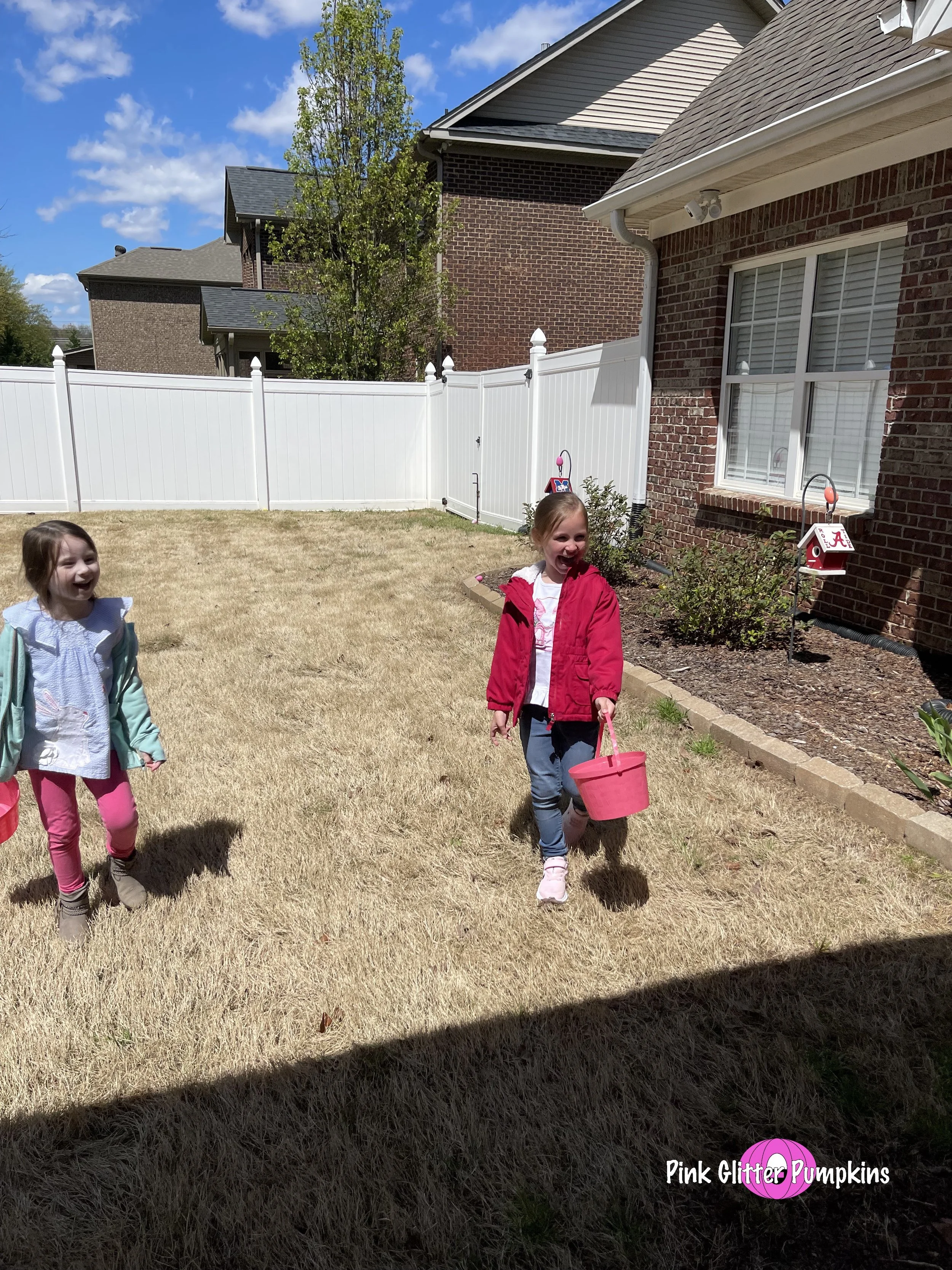 While it was too wet for the egg hunt outside, the girls were able to sneak out after lunch to play with their bubble wands from Brad’s grandparents!