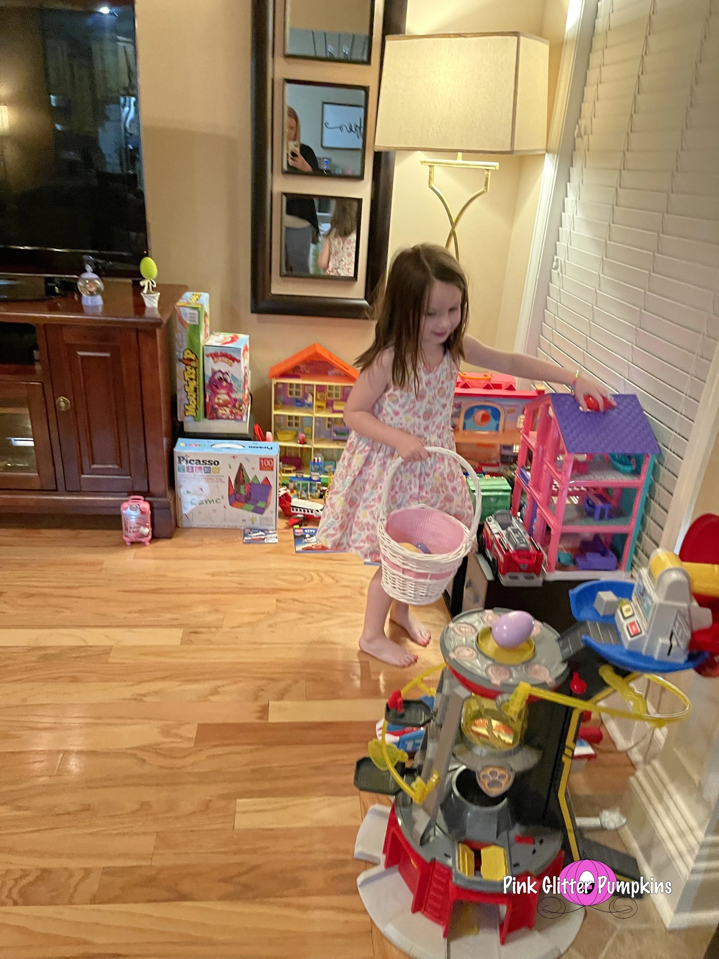 When we returned home Easter evening, we found the Easter bunny had left eggs hidden around our living room!
