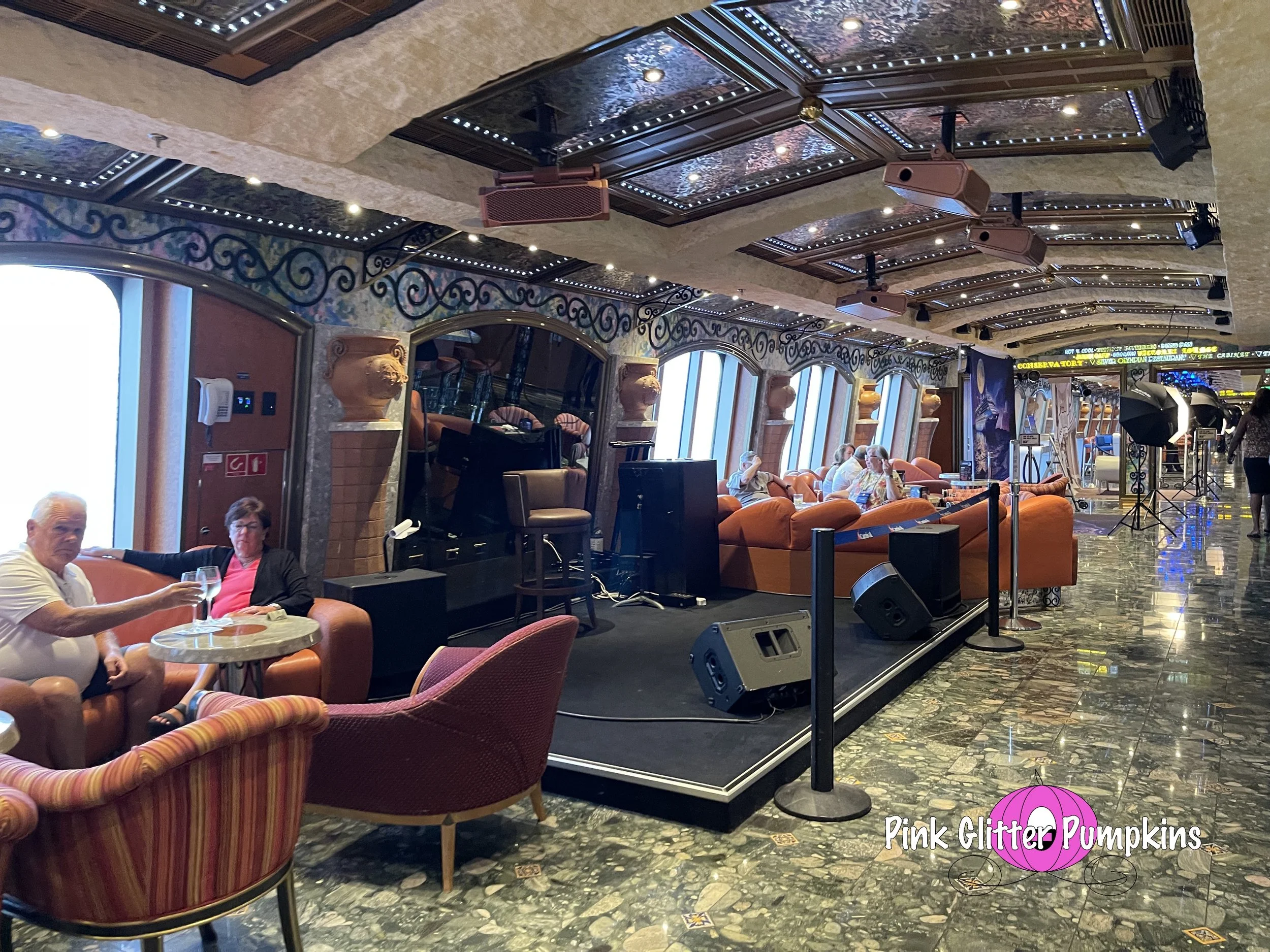 And at the very back of the ship above the dining room is the Victoria Aft Lounge. We went here to see a comedy show, but I think other things went on in this lounge too. The comedy show we saw was not very good, but there may have been others that were better that we did not get to see.