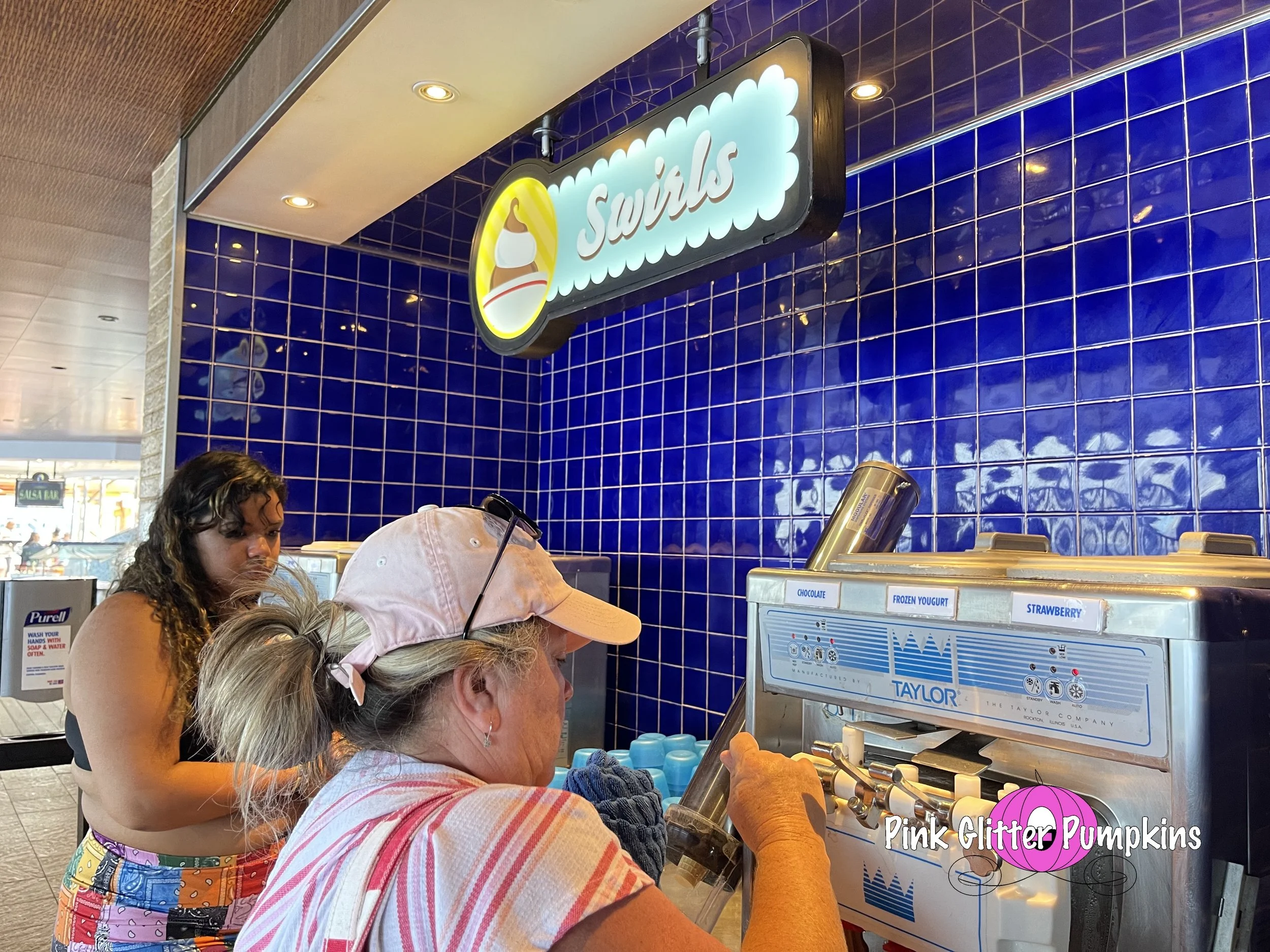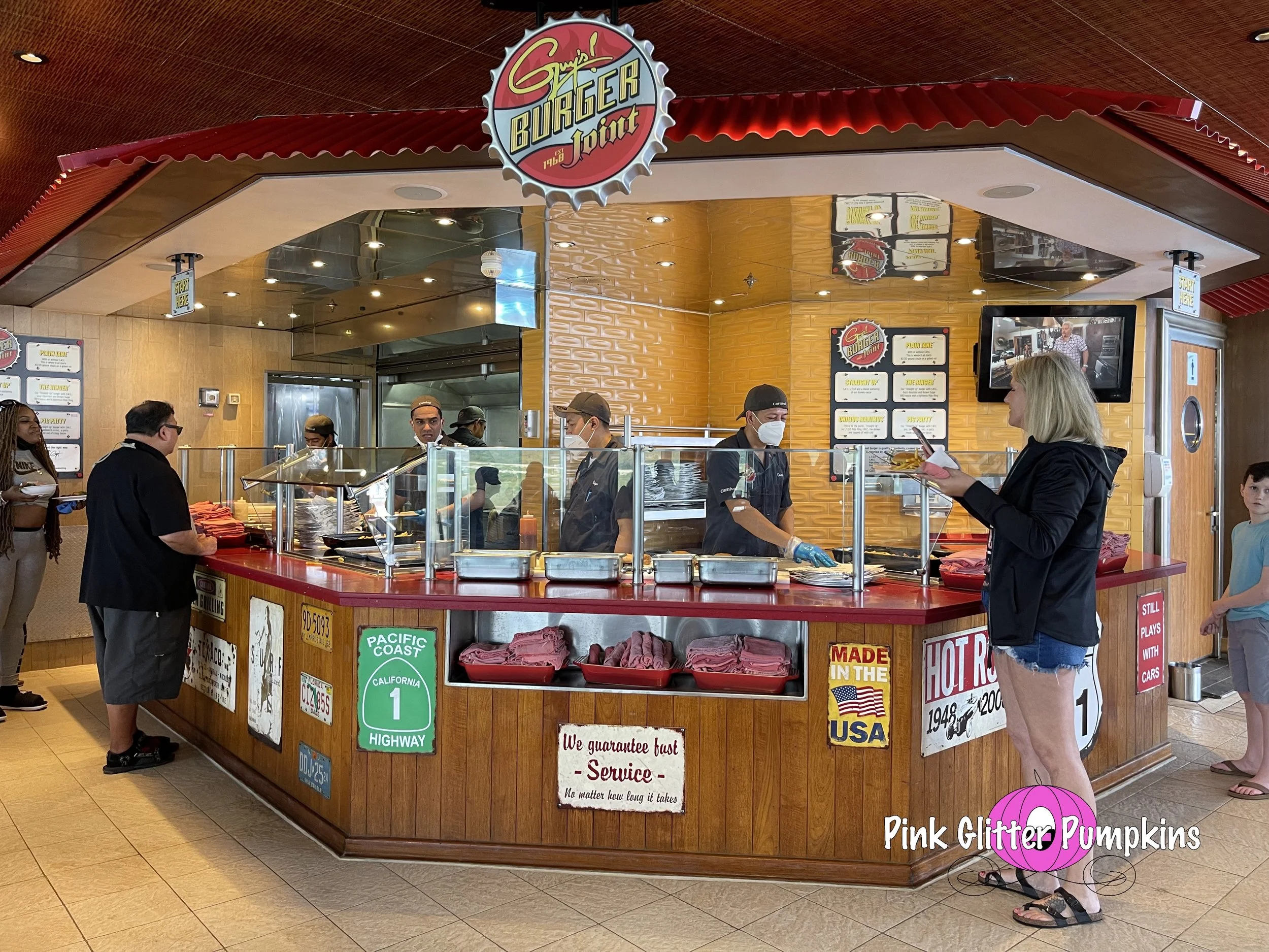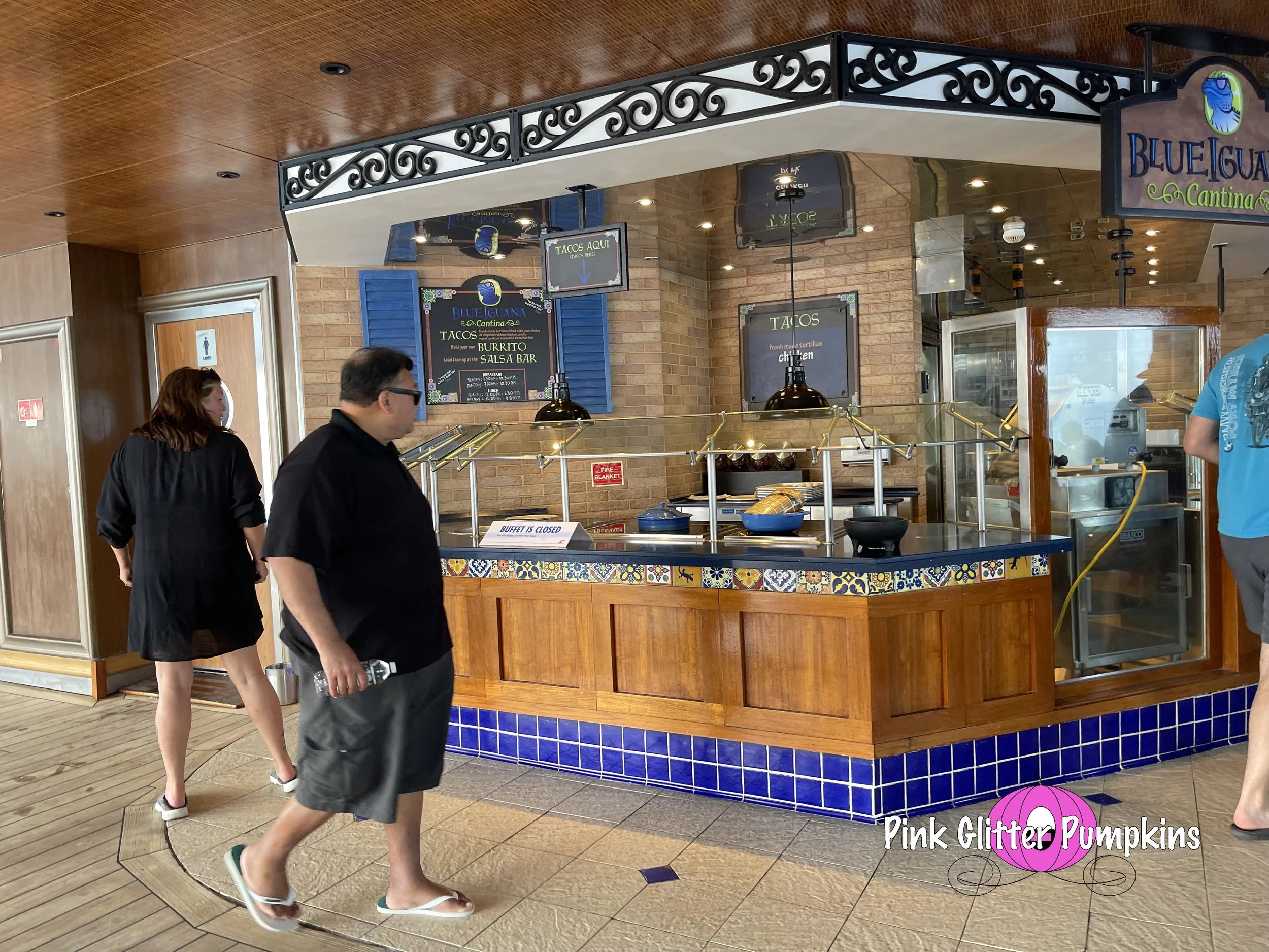 And if you continue outside of the Lido Restaurant, you will find the main pool area which also has a lot of food around it! So you will find the ice cream which is unlimited ALL THE TIME! There is also Guy’s Burger Joint. We ate here a few times, and it was by far a favorite. The burgers were great as were the fries. And then there was the Blue Iguana. It was just ok. They had burritos and tacos along with a salsa bar. It would have been much better with chips! You also had two different bars, and tons of seating. They also played movies here at night.