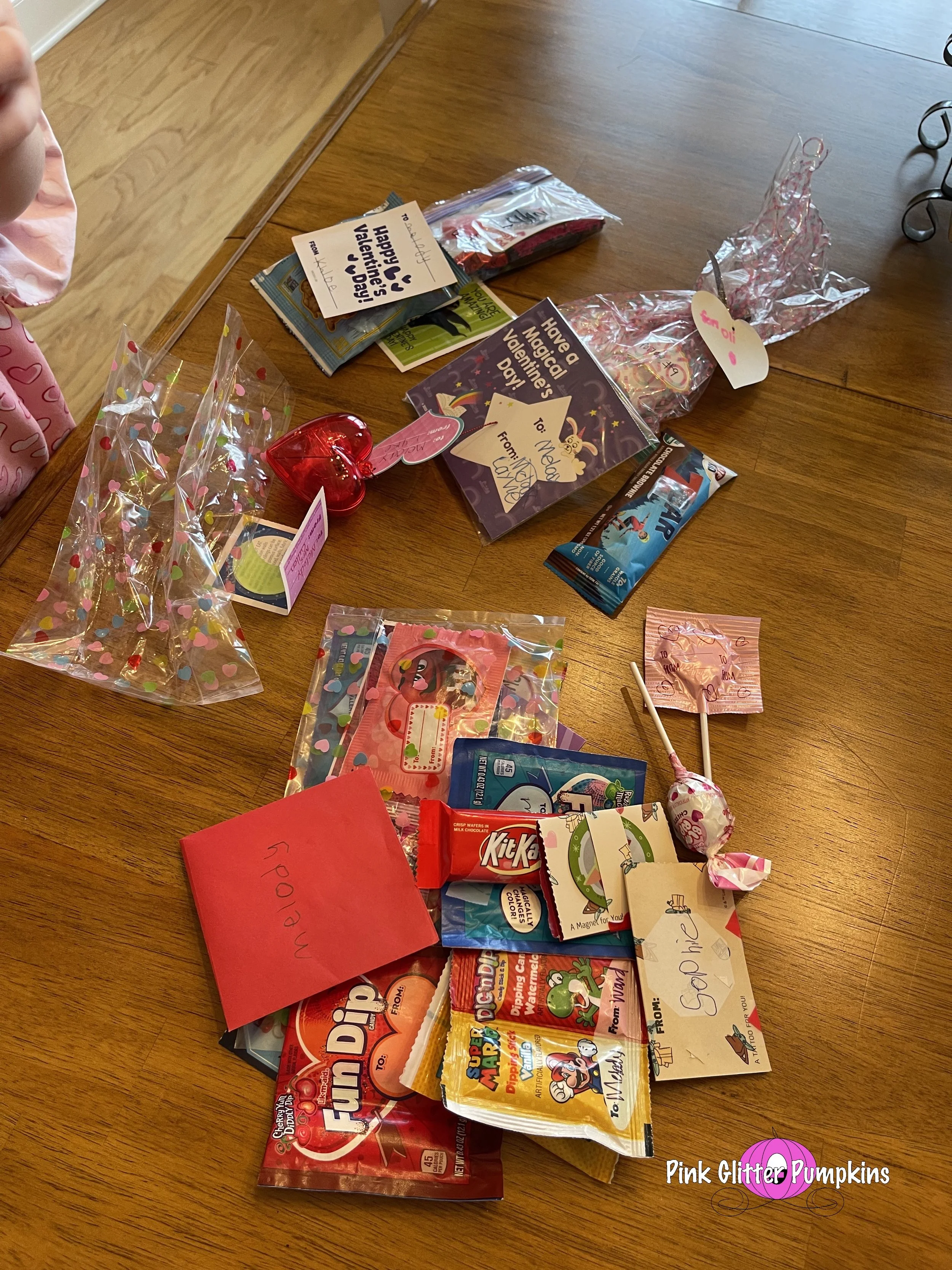 Melody went to school all dressed in hearts, and she came home with SO many goodies (most of which she will not eat!).