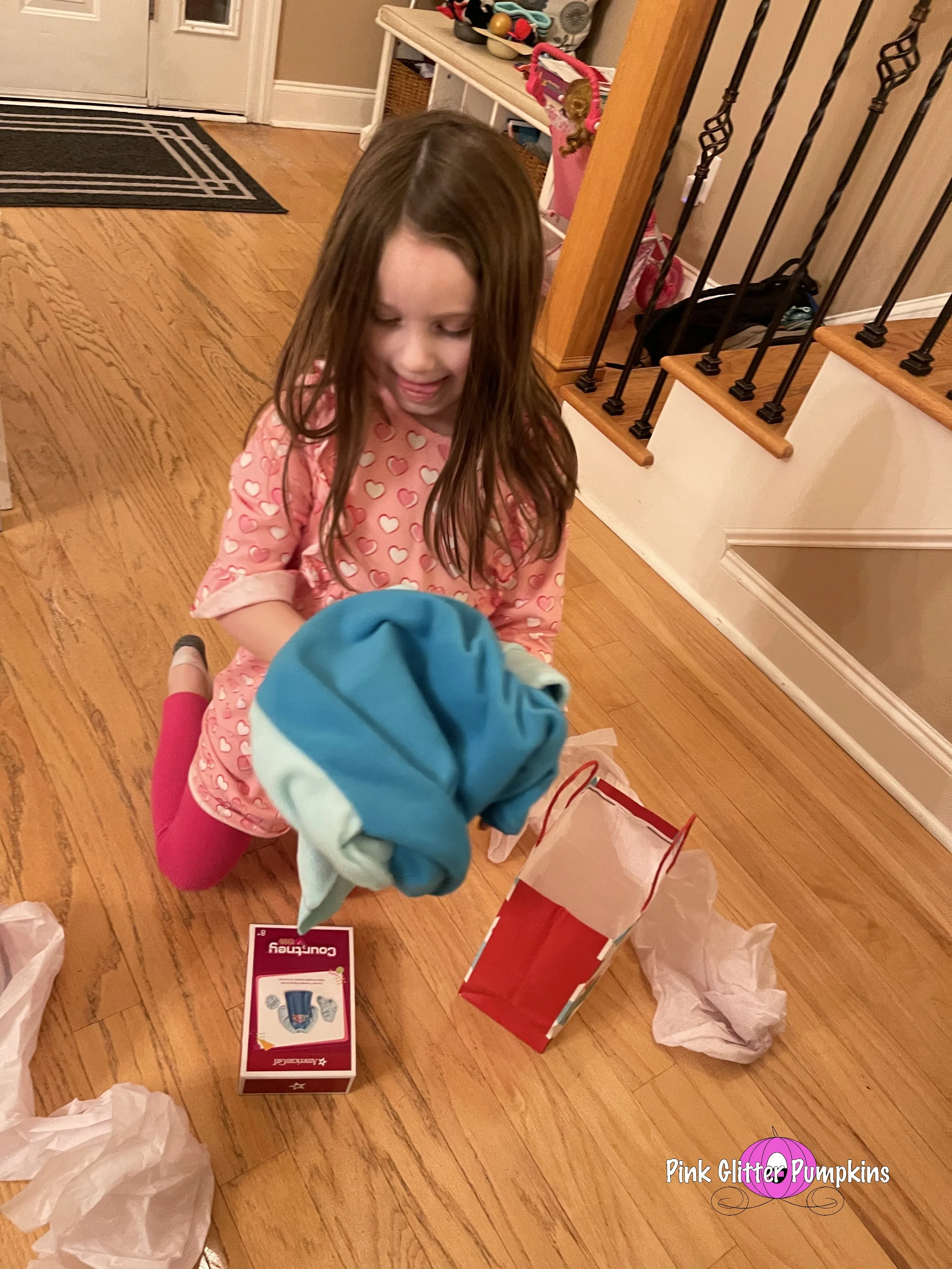 For dinner, we had our traditional homemade lasagna, and Melody was a big help making it with me. After dinner, we unwrapped gifts from each other and our parents. Melody racked up American Girl clothes and toys! We did manage to get a selfie too!