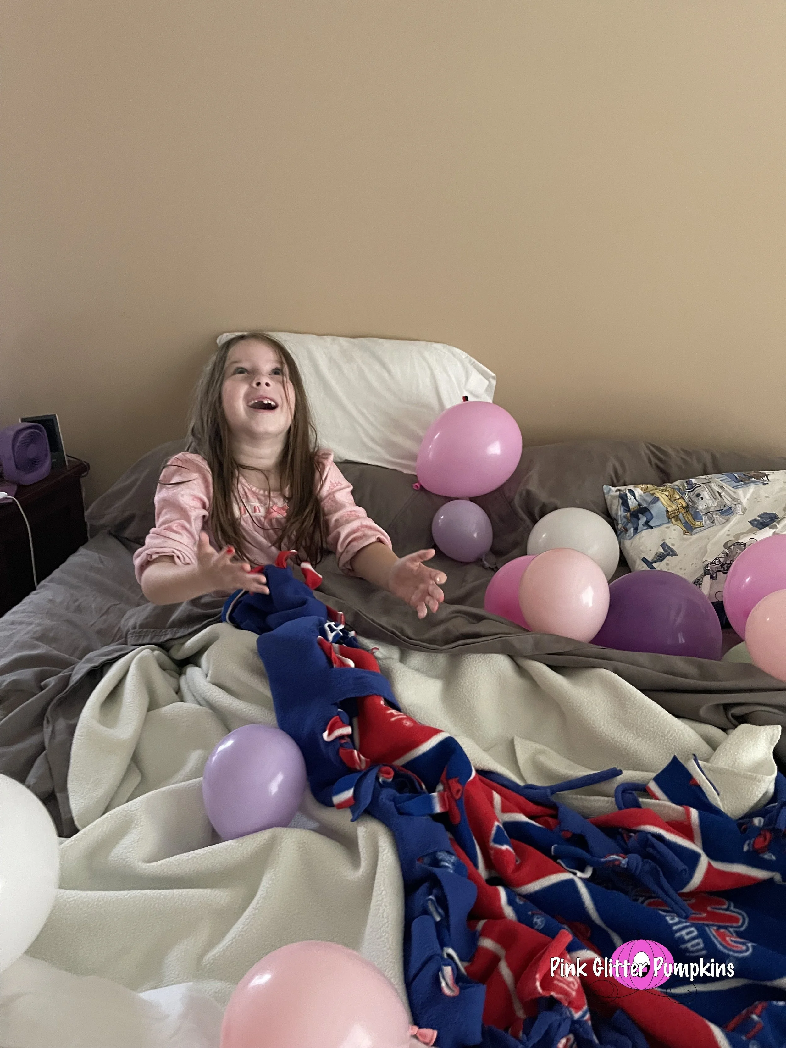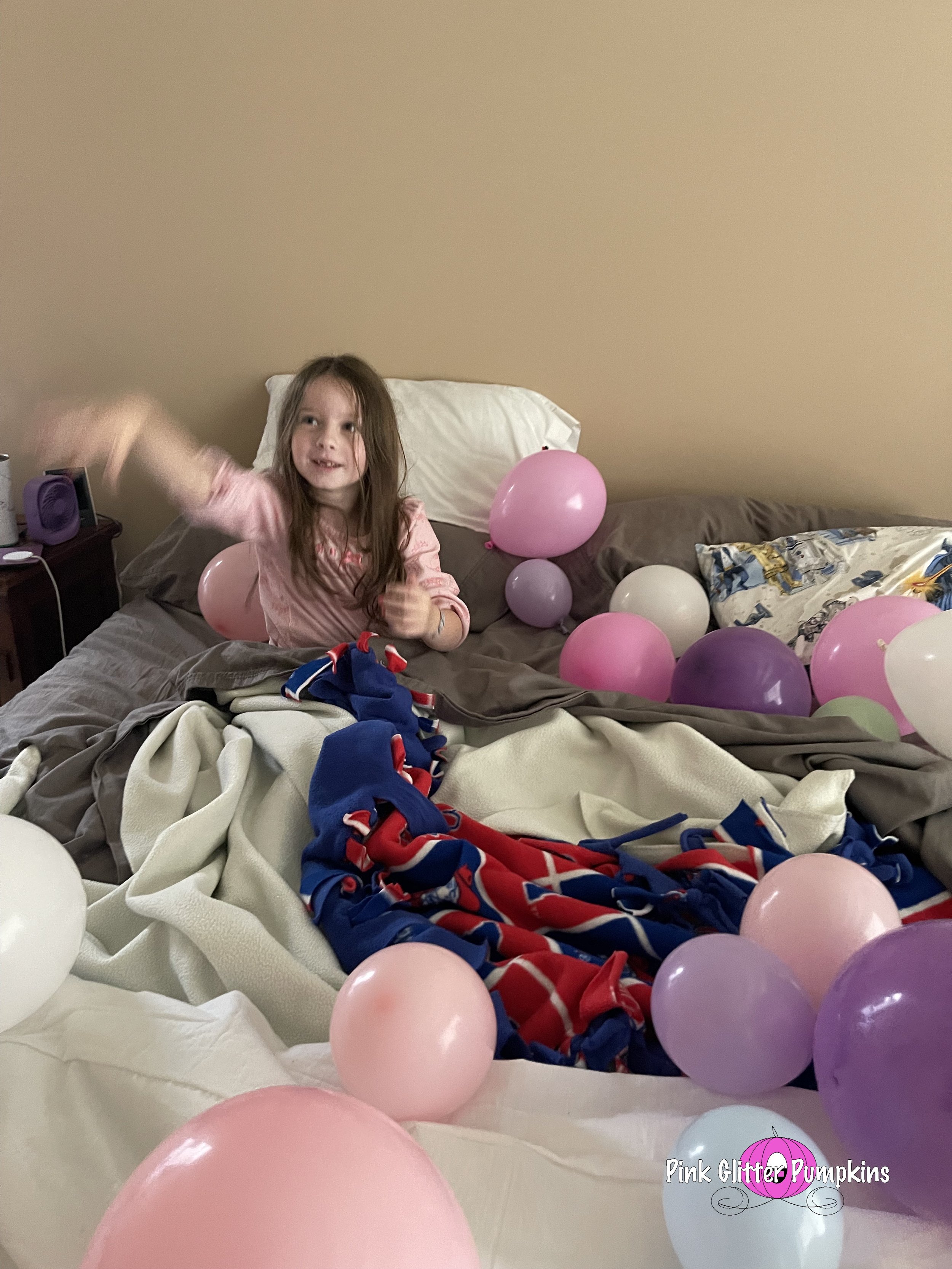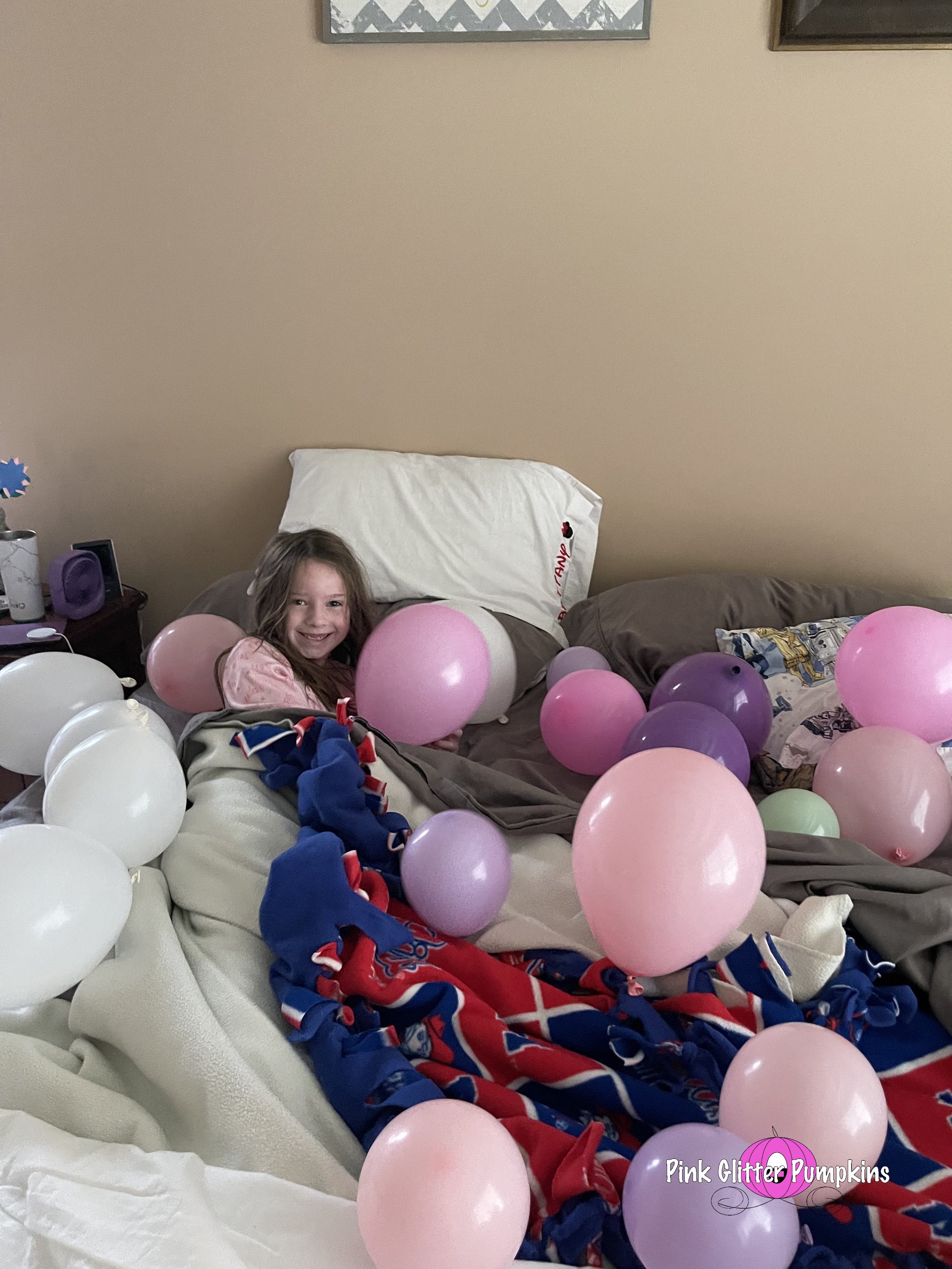 Then we woke her up with all the balloons. It is another annual tradition that we do. You can even see the collage I made of all the mornings past.