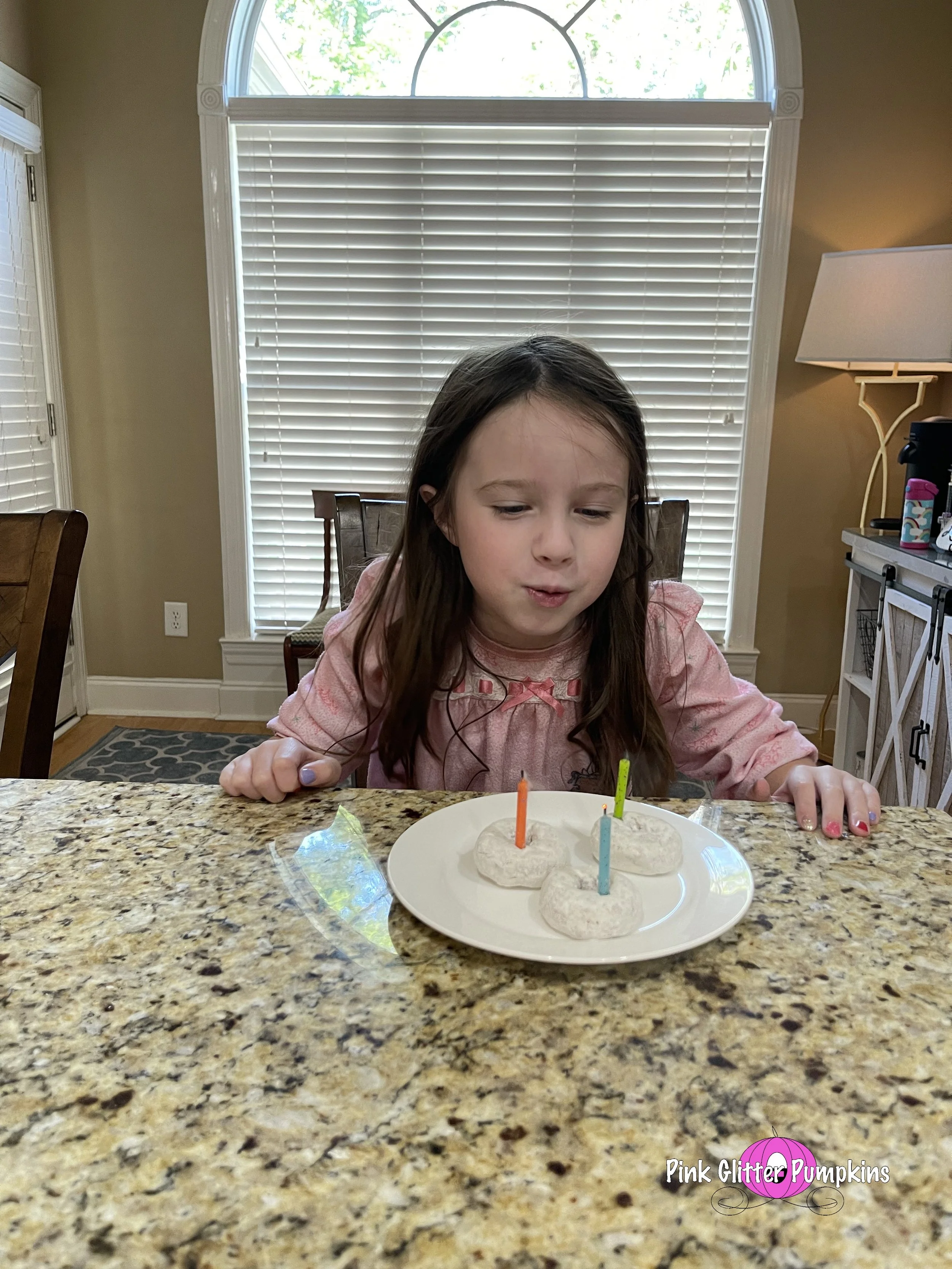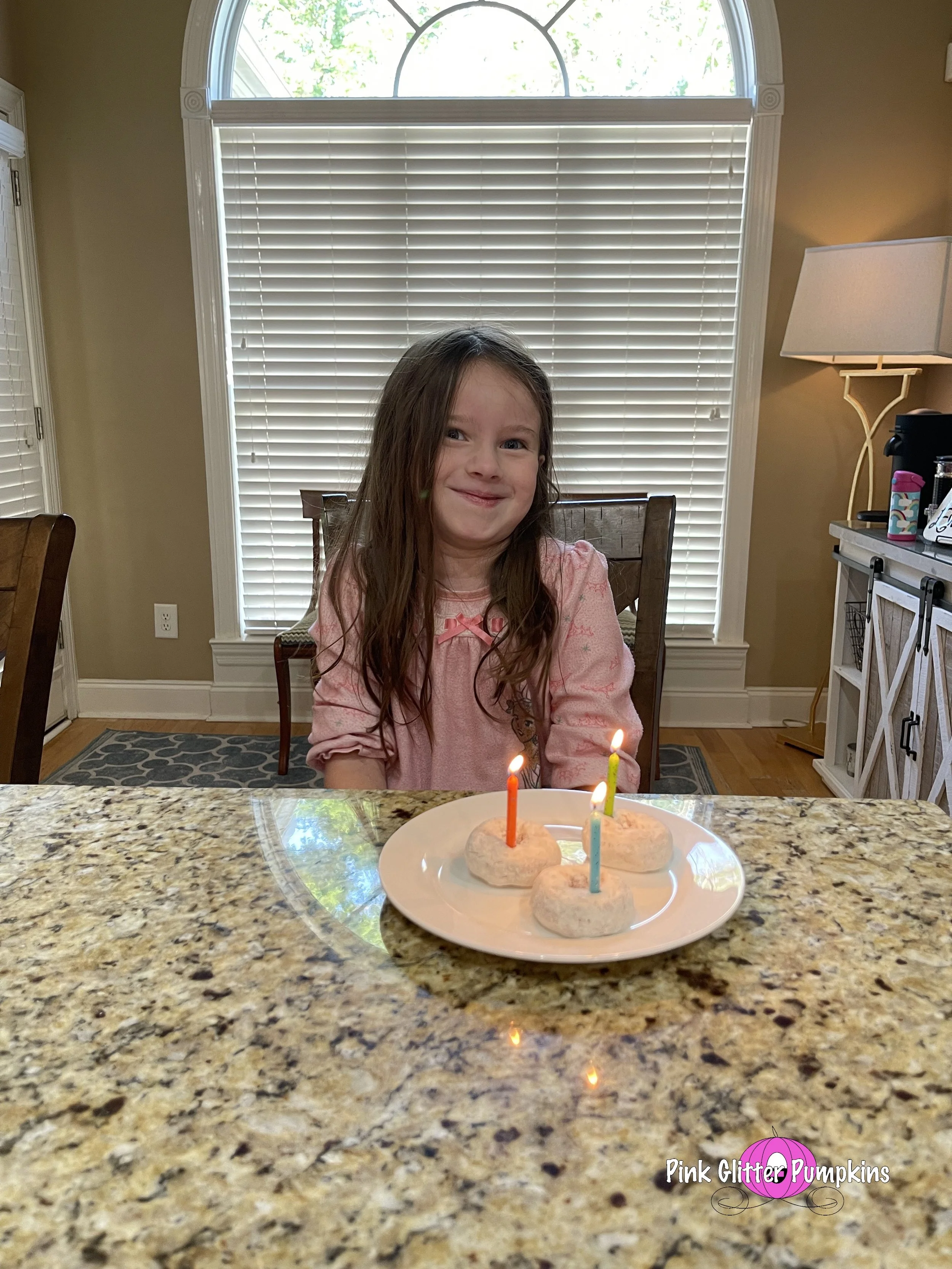Then she had donuts for breakfast. She was slightly embarrassed by the candles and singing though.