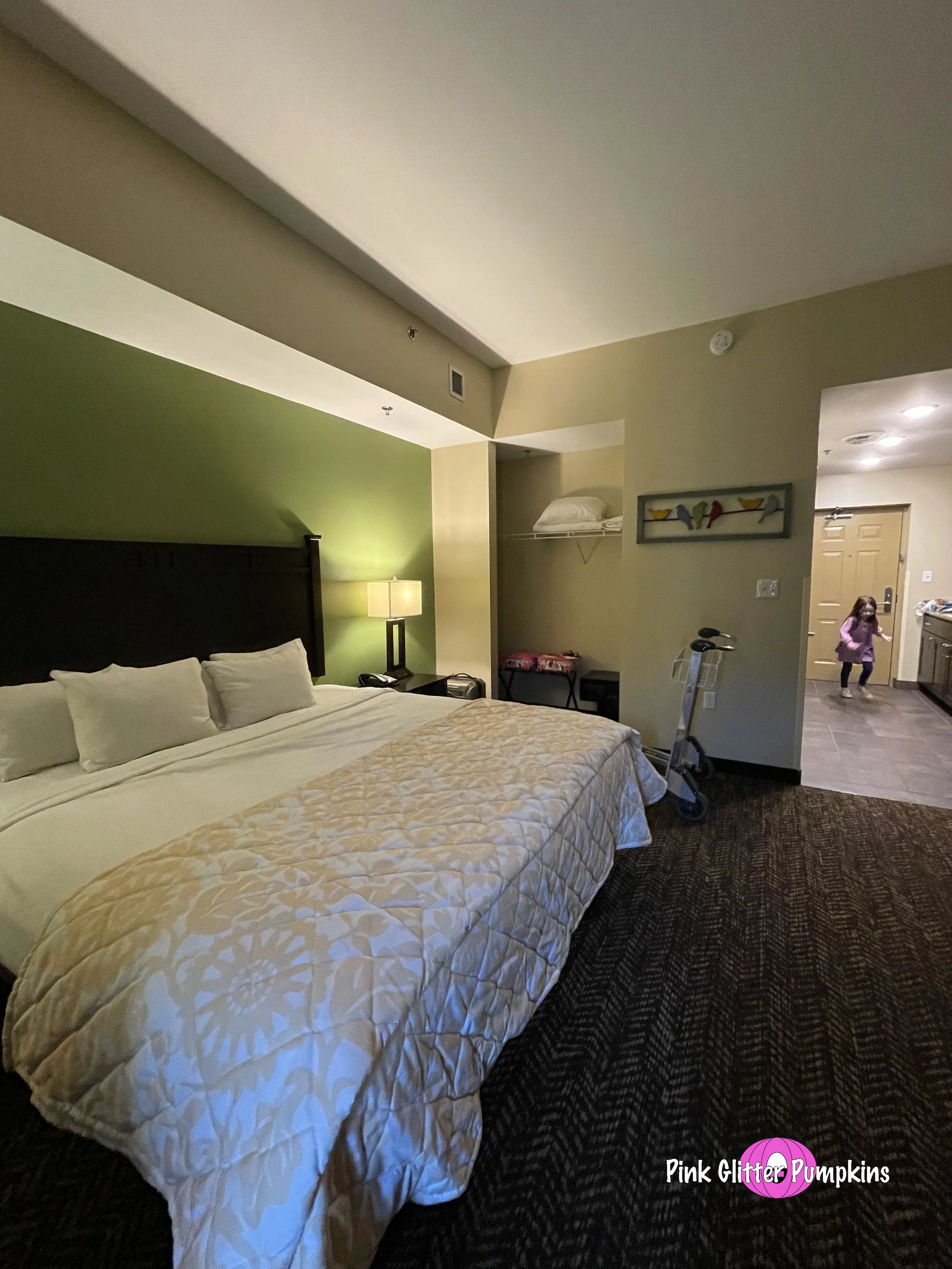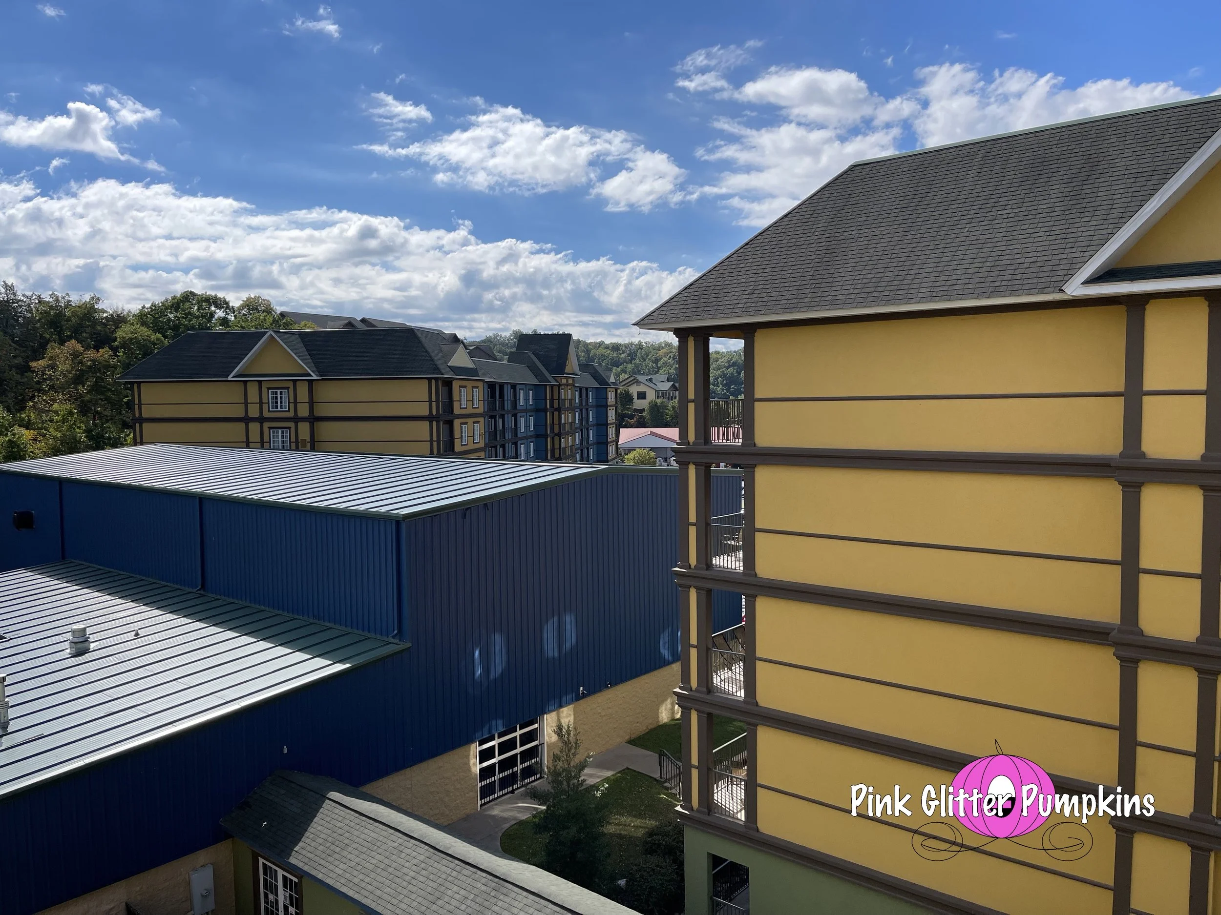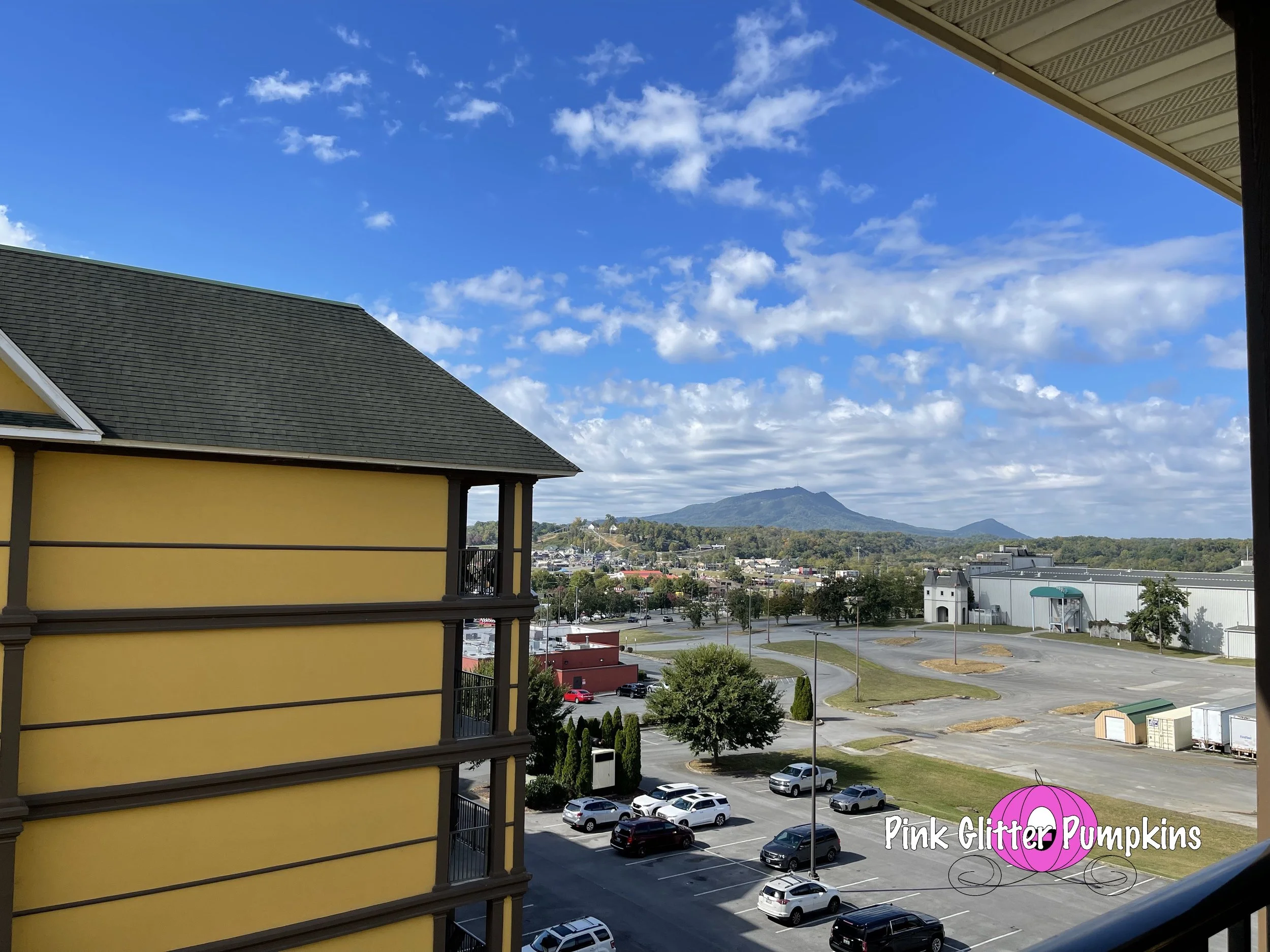 We opted to stay in a studio room since it was just the three of us. We got a king room with a balcony and a twin fold out chair. We did not use the fold out chair because we could all three easily fit in the king bed. We also did not pay for a fancy view, but the view wasn’t awful either. A tip to get a cheaper rate is to sign up for the Smoky Mountain Rewards. You not only get a discount here, but at a few different places throughout town.