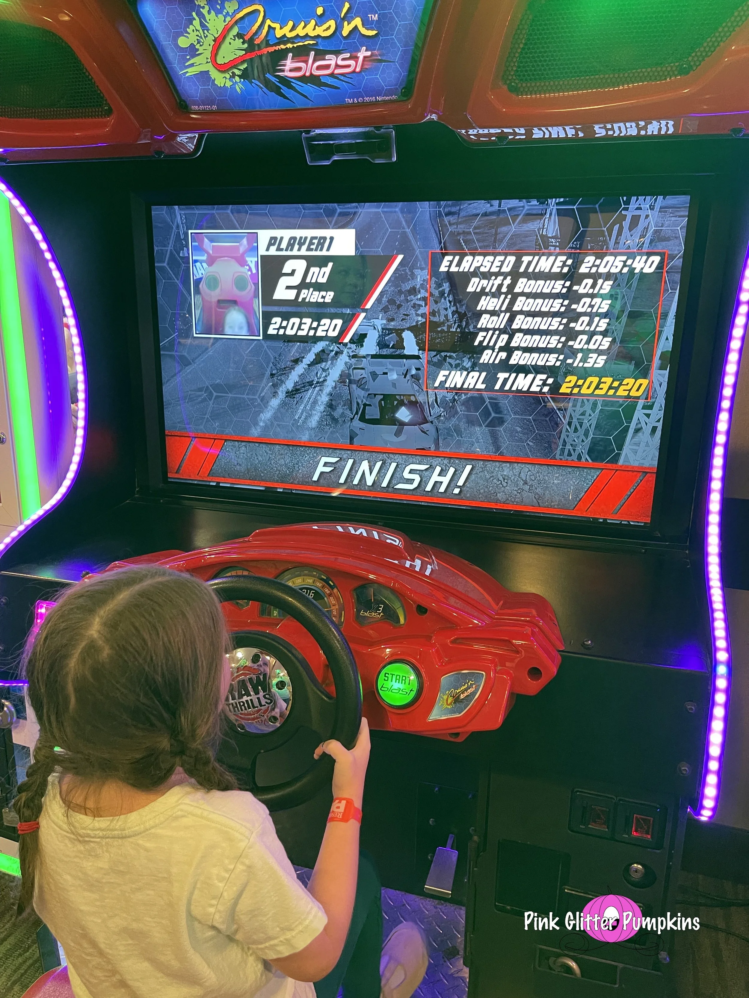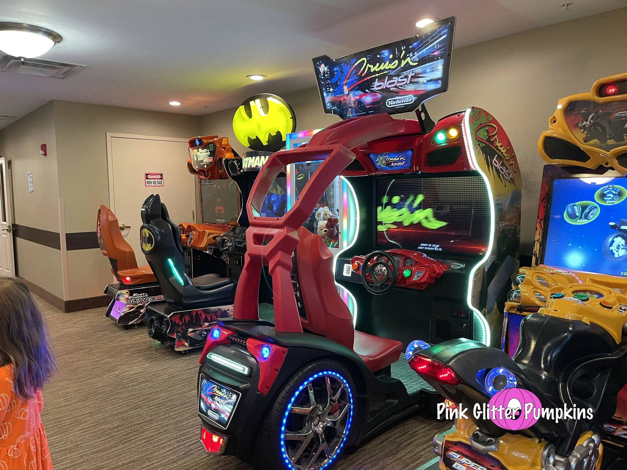 You can also find an arcade near the activity space above. It isn’t huge, but we were the only people in the arcade each time we went. And there was plenty enough for Melody to do.