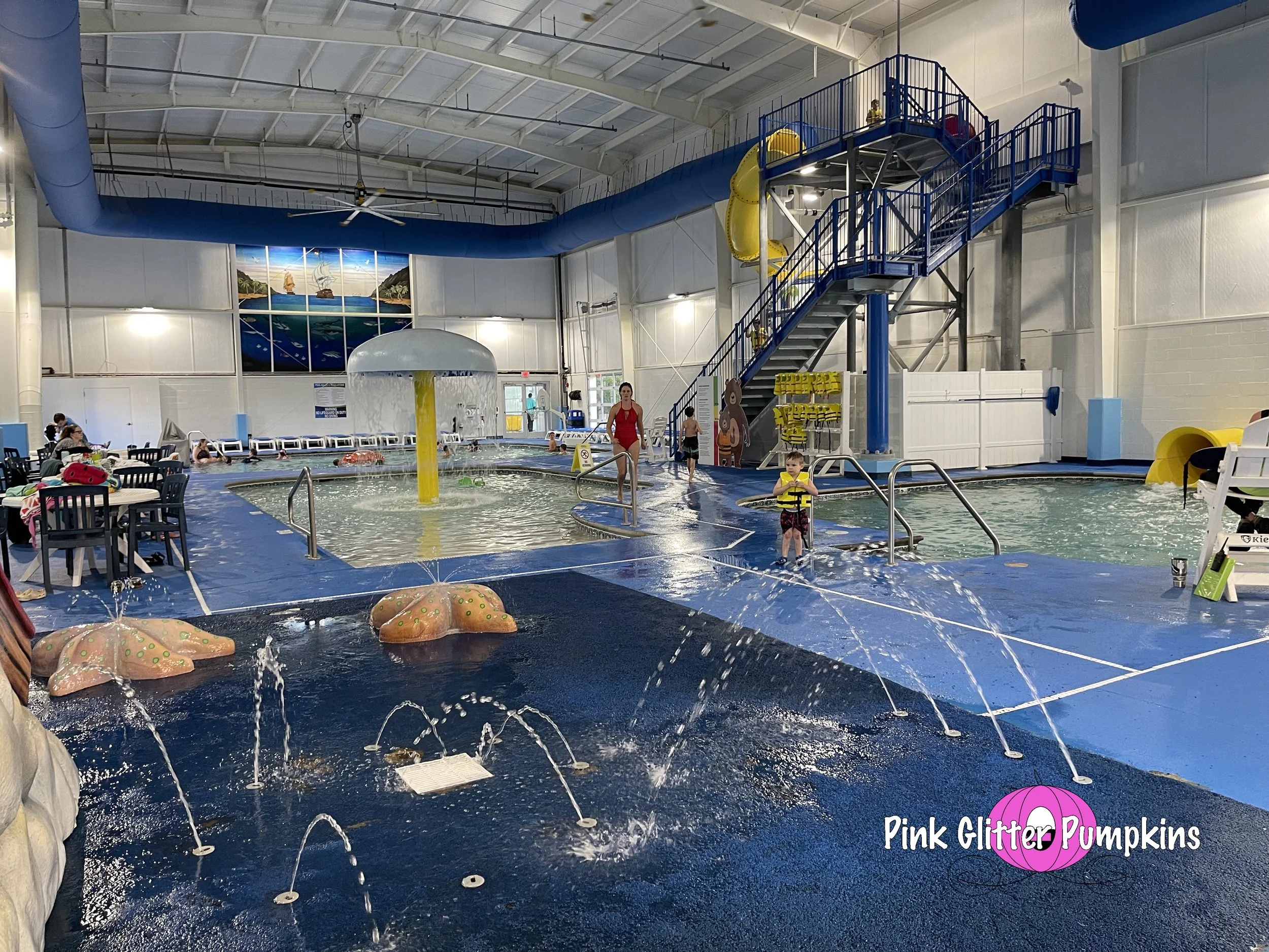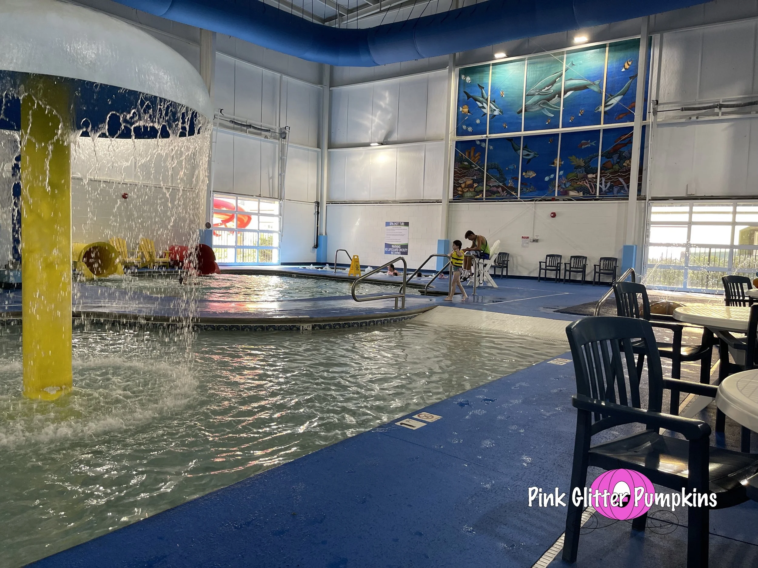 The indoor pool is where we spent the majority of our time during this trip. To my surprise, Melody LOVED the water slides. Due to her height, she did have to wear a life jacket. And that security blanket probably helped her fears. She was super hesitant. at first, but then it became a competition for her. She wanted to always race someone. In addition to the slides, they had a traditional pool, a kiddie pool, and a hot tub. There was also a sauna tucked away. You can also find plenty of tables and chairs as well as restrooms.