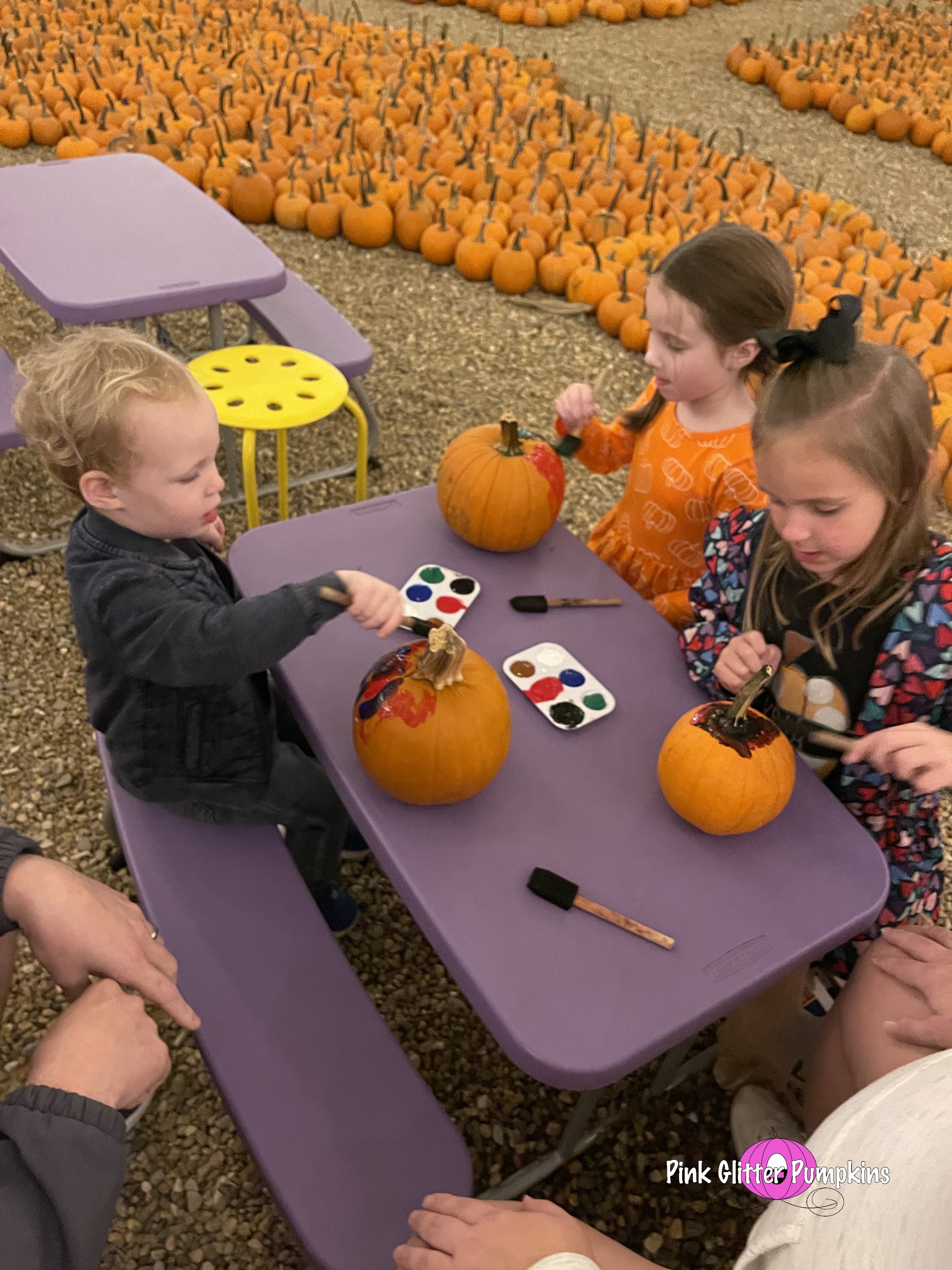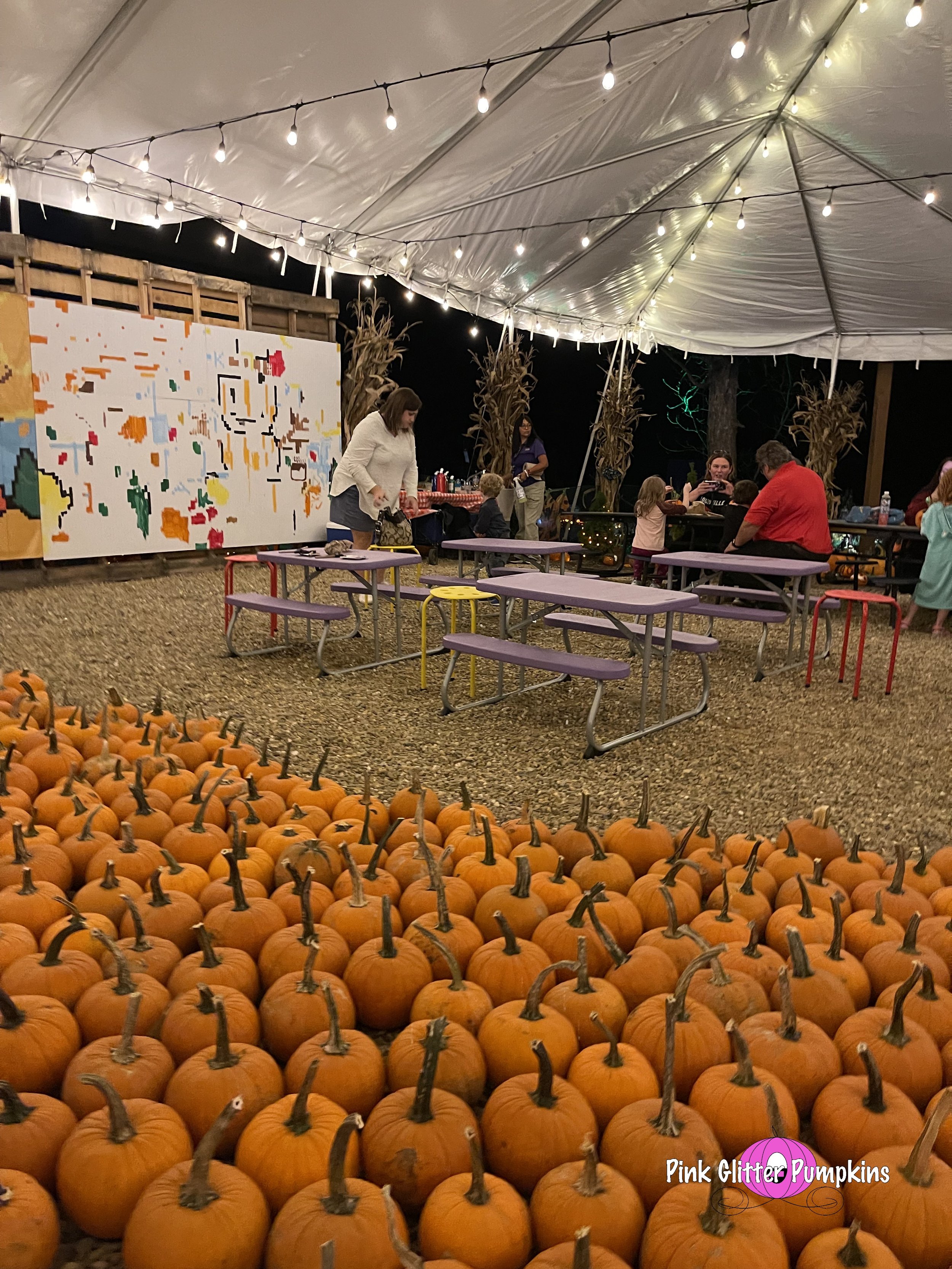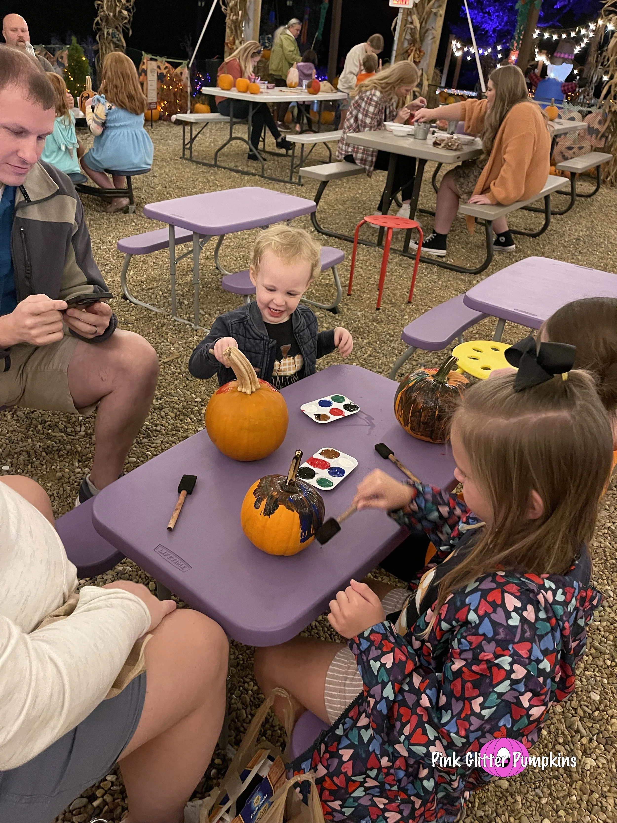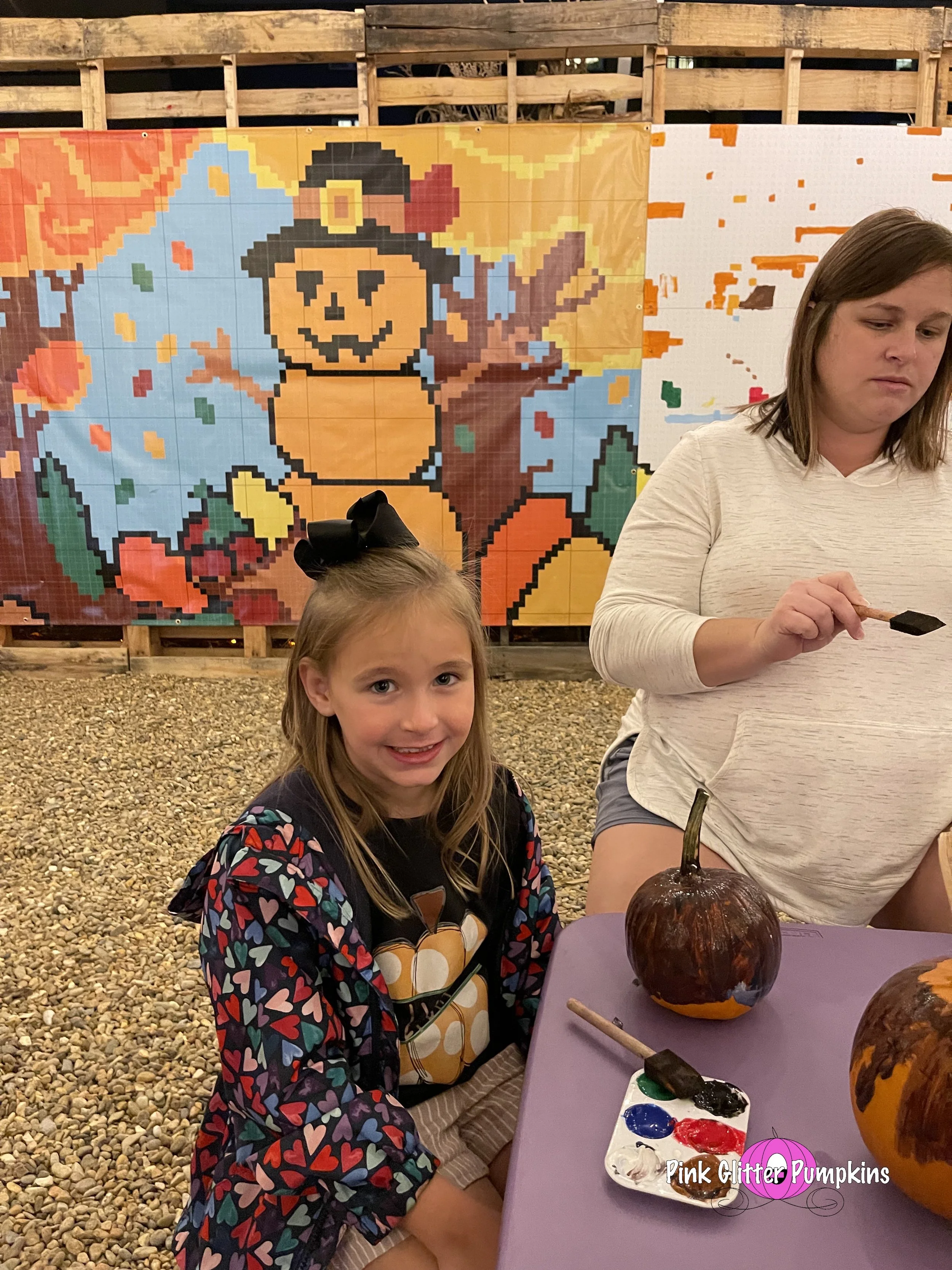 As you will see, everything “glows”. So they have their own version of a pumpkin patch here. You can pick a pumpkin and pay for it (I think it costs around $5 a pumpkin maybe). Once you pay, they give you paint supplies and you can sit at one of the tables and paint your pumpkin. Once done, they will clean up the paint, and you can either take the wet pumpkin with you, or they will tell you where you can put it to dry. Then you can either get it later that night or the next evening. Do pay attention to their hours though. They also had a “paint by numbers” style canvas that you can do for free while in there.