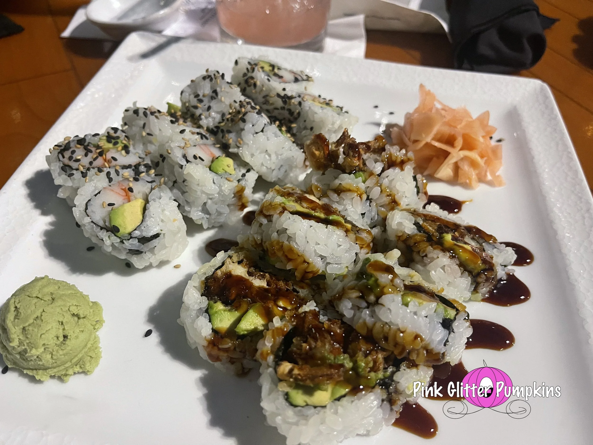 For dinner, we decided to head to Cascades and eat some sushi. They have delicious sushi at dinnertime, and they still have a good kidβs menu that Melody will eat from.
