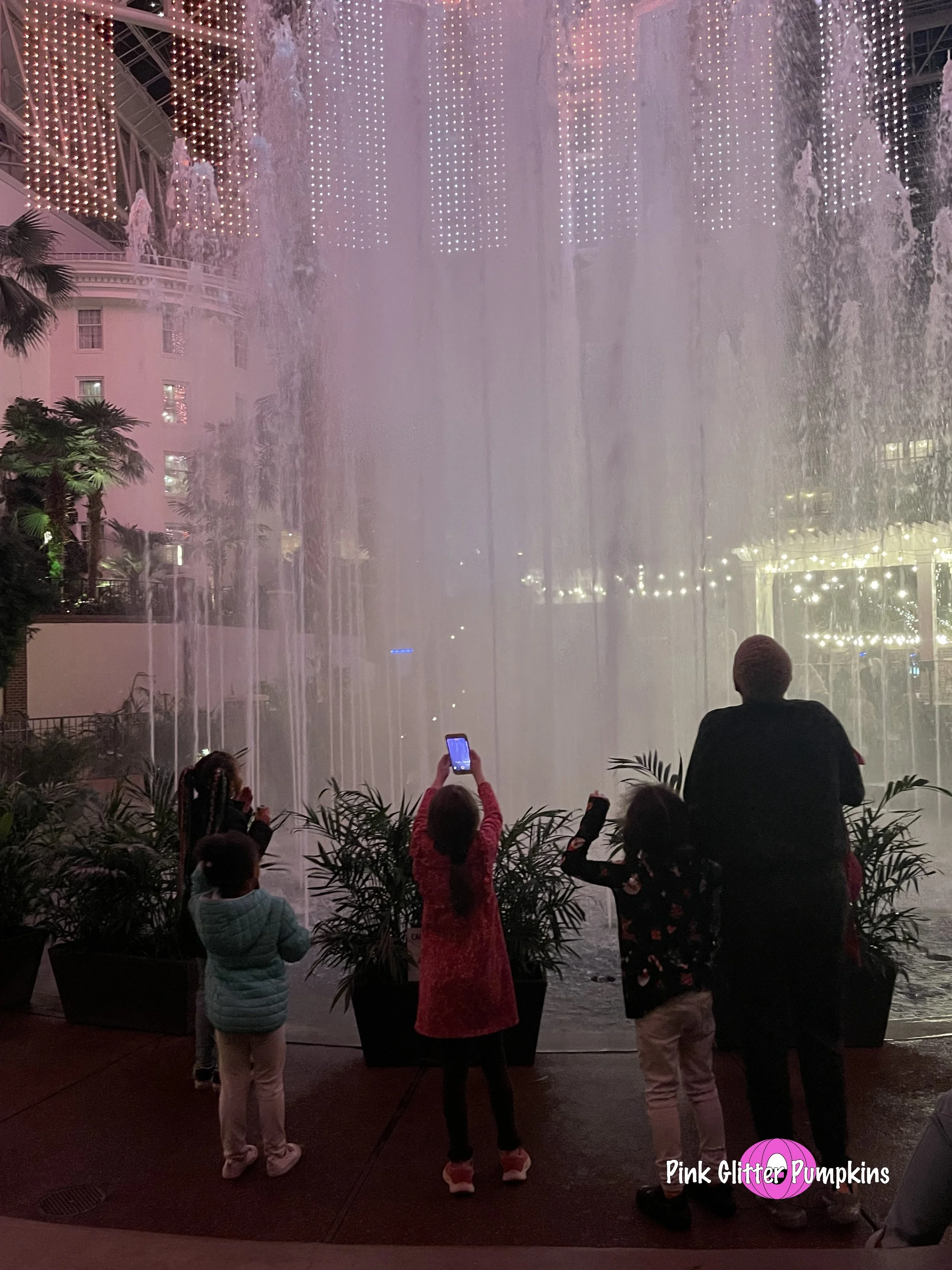 We ended the evening watching the fountain show. It is completely free and such a fun way to end the night. Melody loves listening to the music and sitting close enough to get slightly wet by the falling of the water. We always make time to see both shows at least one during our trips.