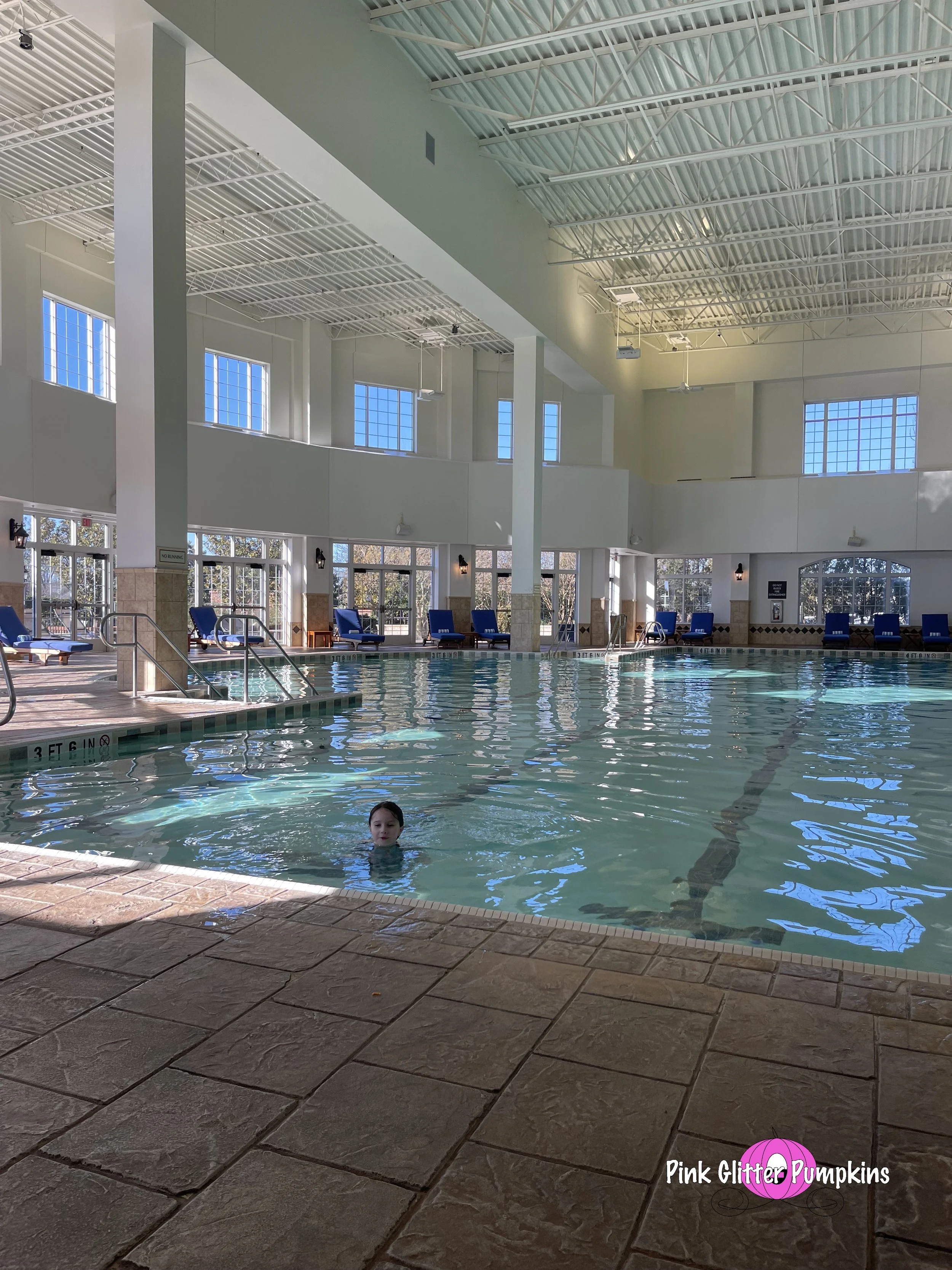 We spent time at the indoor pool as we always find Soundwaves, the indoor water park, really crowded for the price. And Melody was still at an age during this trip where she didnβt LOVE getting her face wet unless it was by her own doing. So waterslides were not her friend yet. Usually we find the indoor pool to be fairly calm. This is especially true when Soundwaves is open.