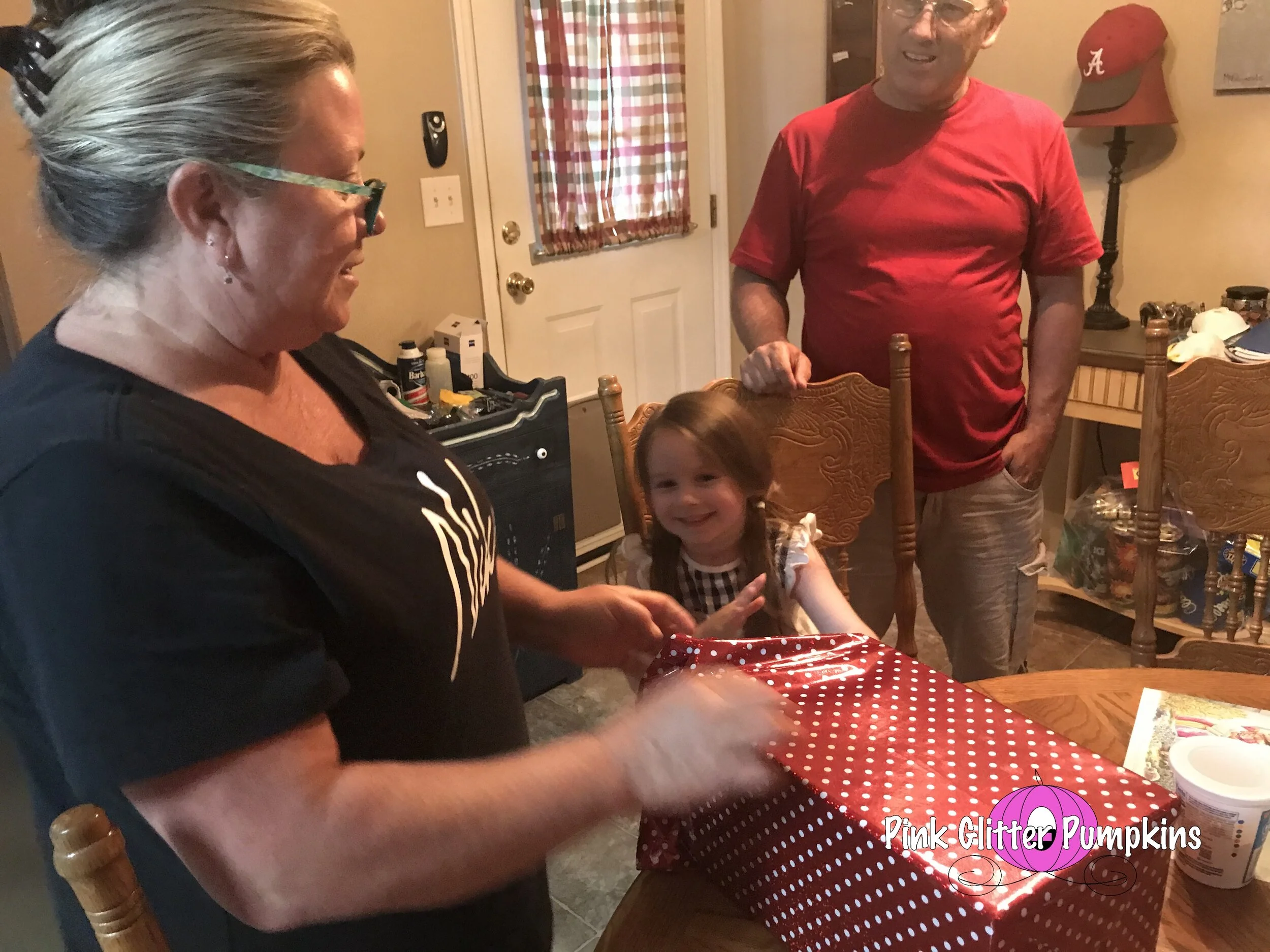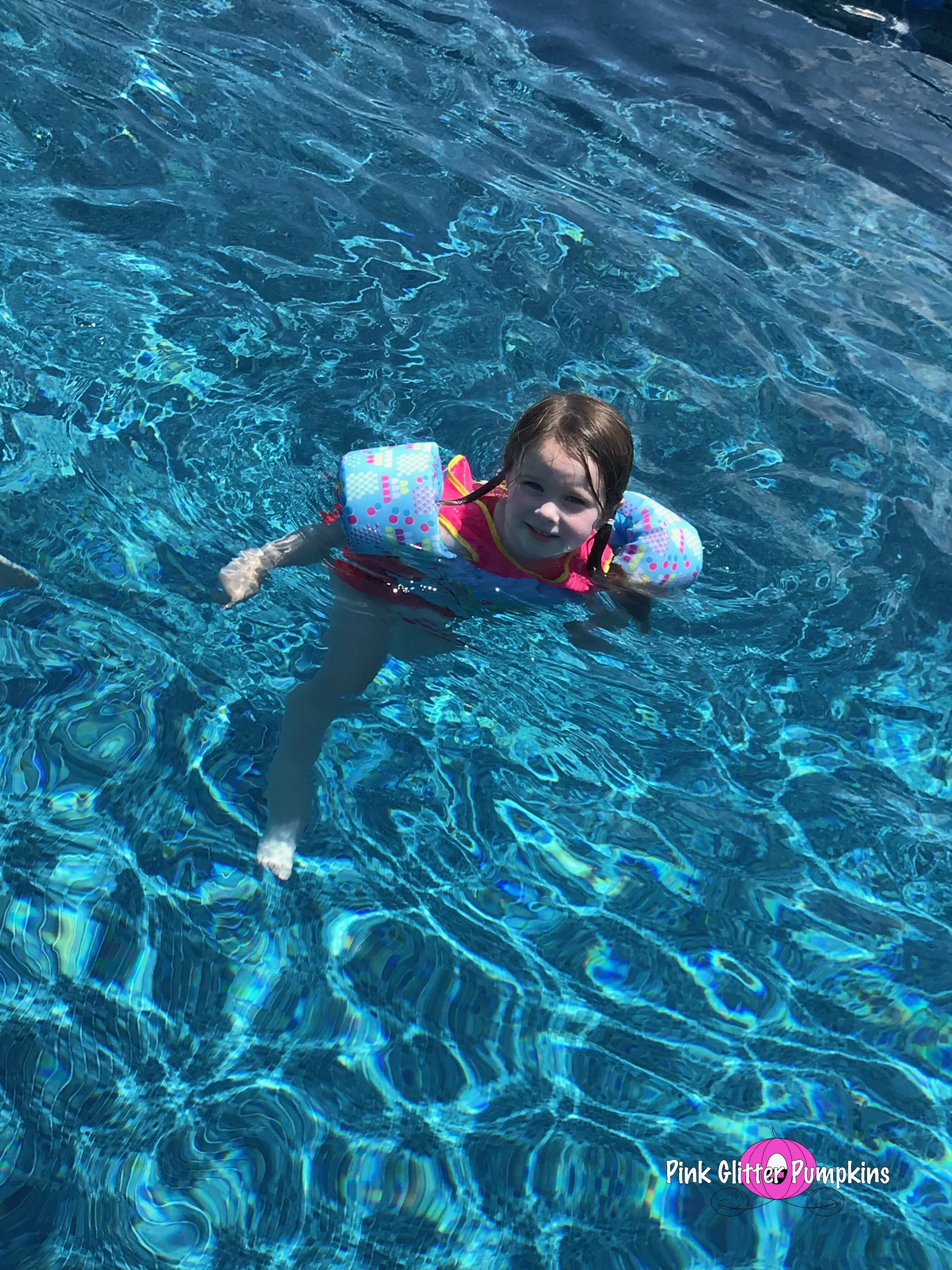 On Friday, we spent the day at my parents house. My mom’s birthday is this week, but she will be traveling for work. So we also celebrated while visiting with them. We spent a lot of time at the pool, followed by some fun inside. And we ended the night shooting fireworks at their house. Melody really enjoyed it and had a lot of fun!