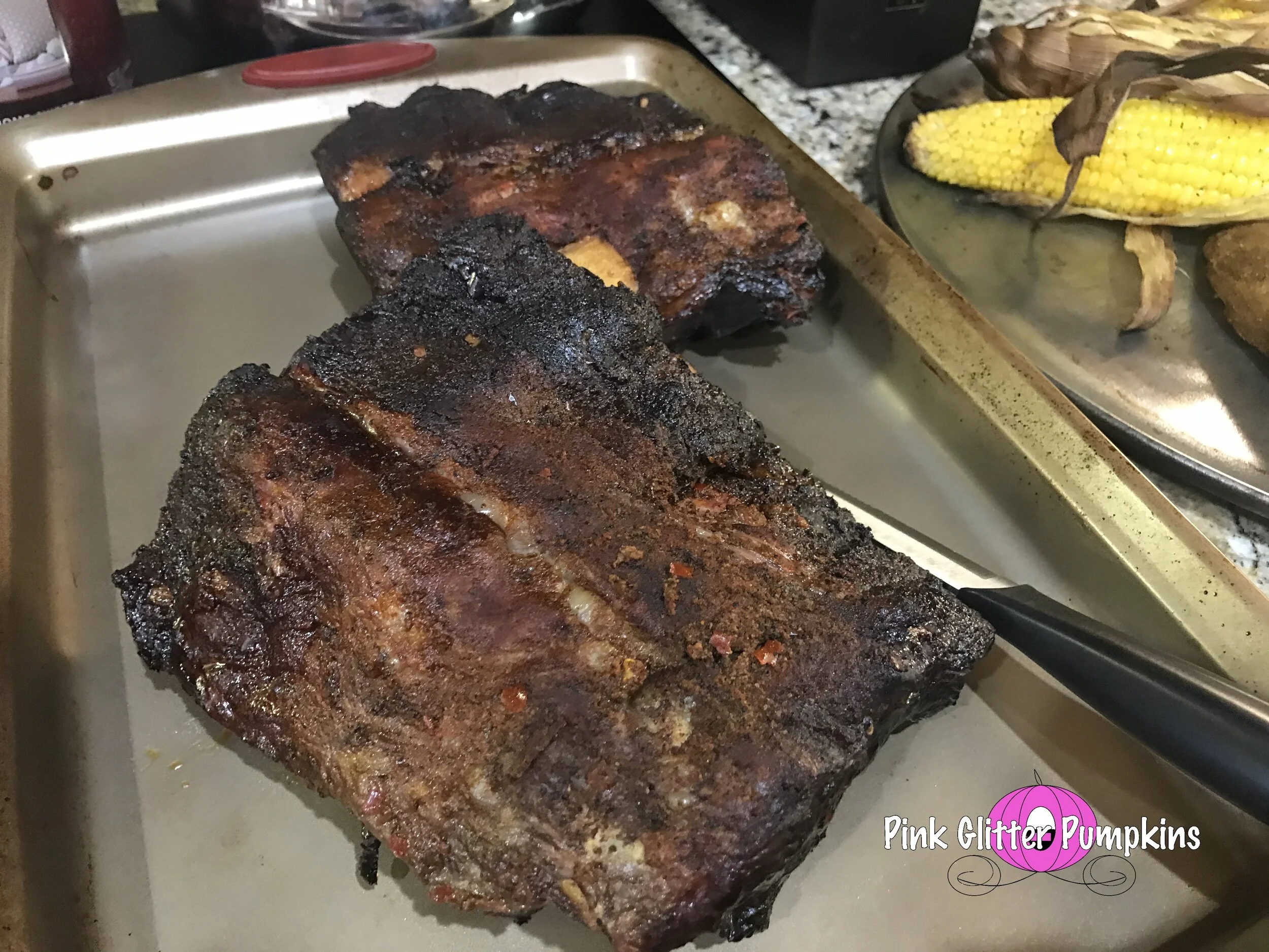 On Saturday we smoked ribs, as usual. We started the day outside with the girls. Our friends came over, and we blew up a fun pool that they played in. We ate yummy food, and we ended the night outside watching fireworks all throughout our neighborhood and surround neighborhoods. Our neighbors said they have never seen this many fireworks around. It was a lot of fun.
