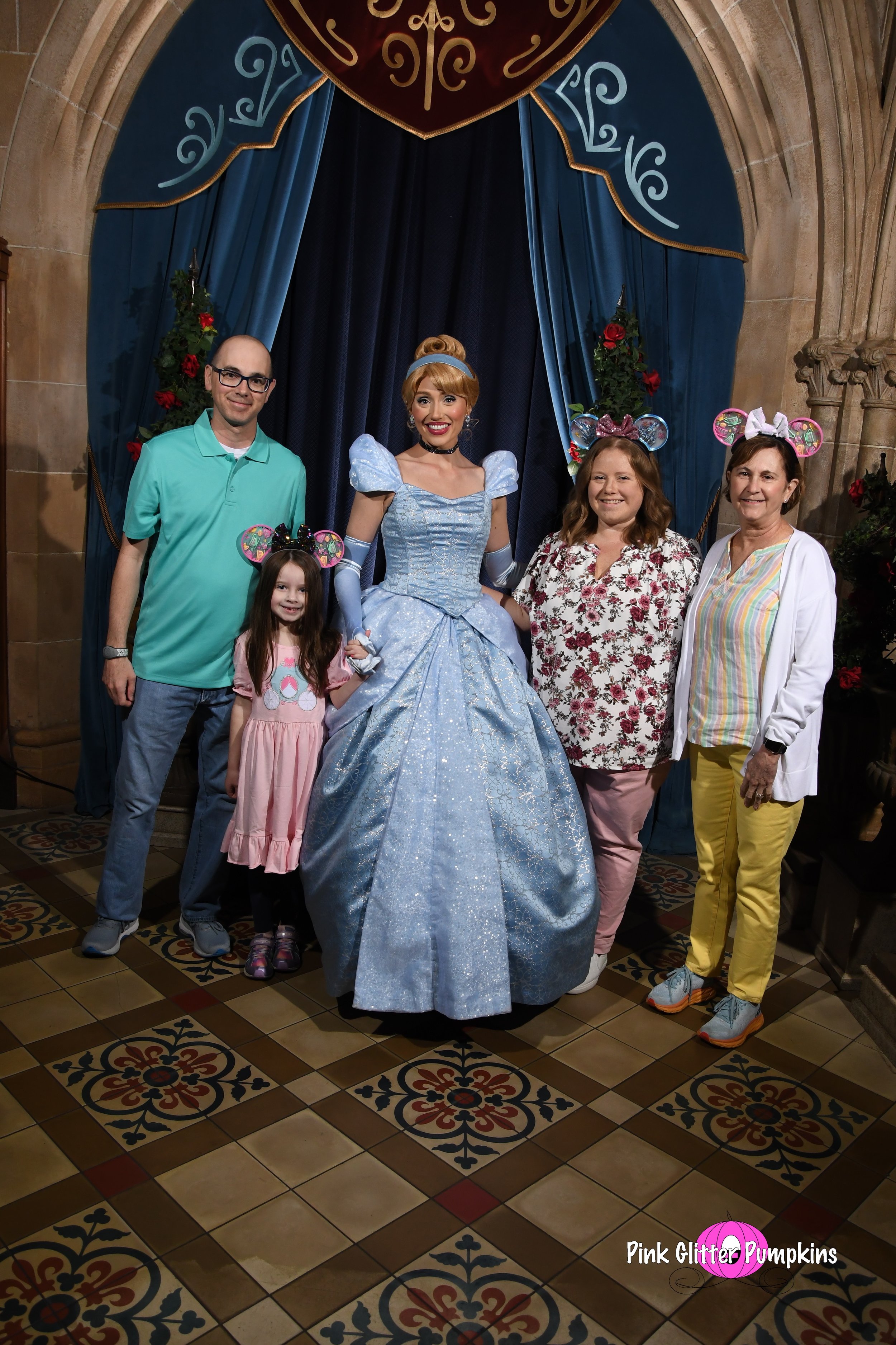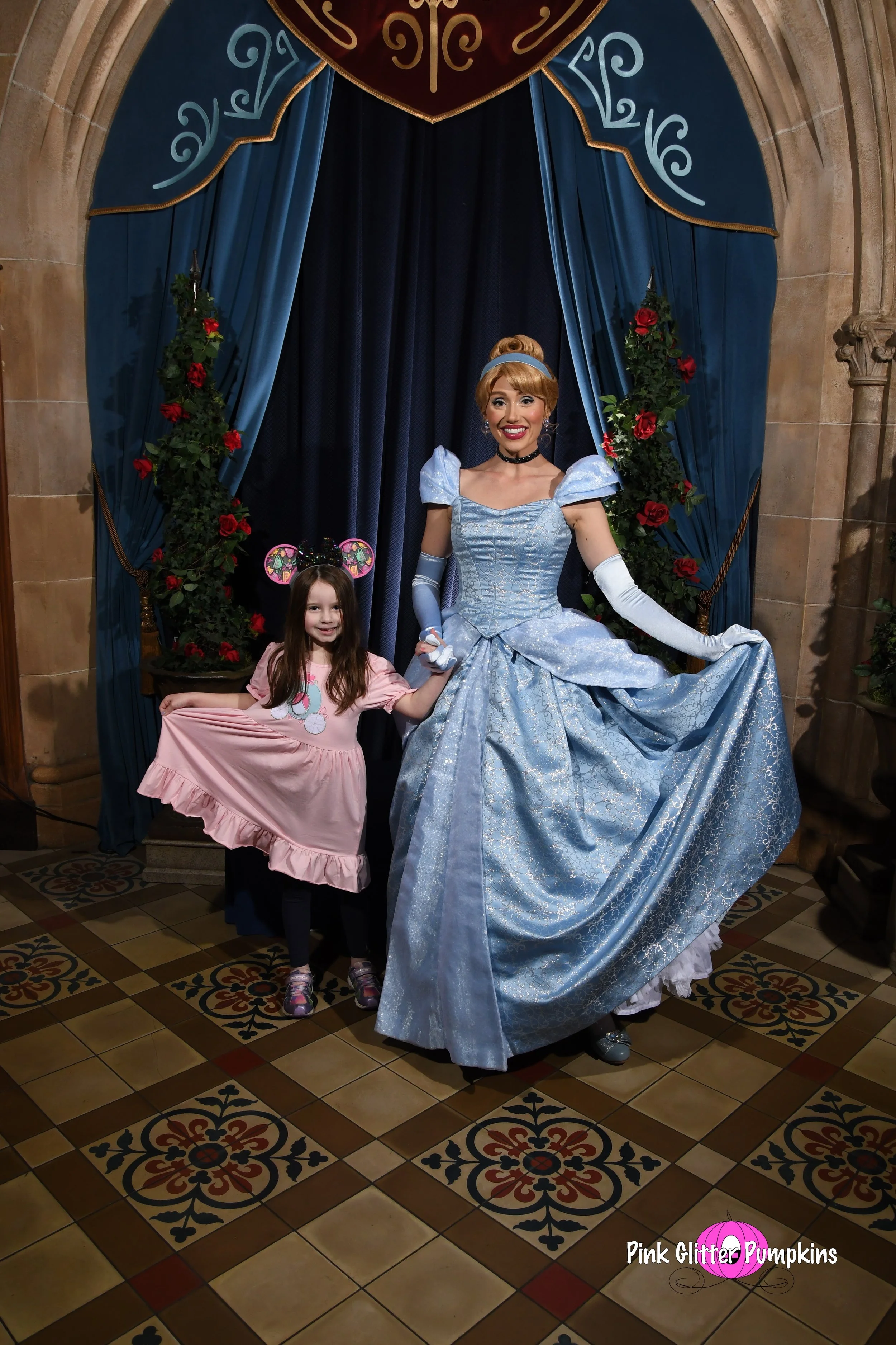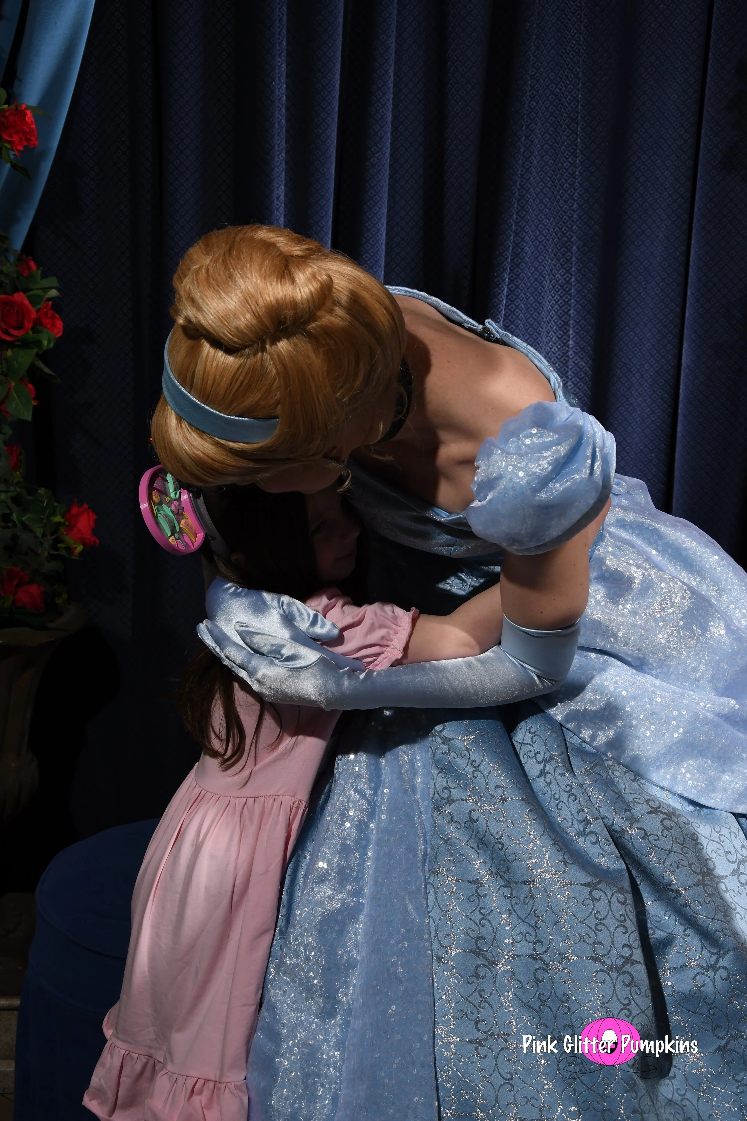 Our reservation was at 10:05, and we were called back at 10:15. We were asked to wait in a line where we would get to meet Cinderella and get our picture made with her. This is the only photo pass photographer you will encounter during this experience, but we did get about 10 pictures. Some with our entire group, and then they took some of just Melody and Cinderella.
