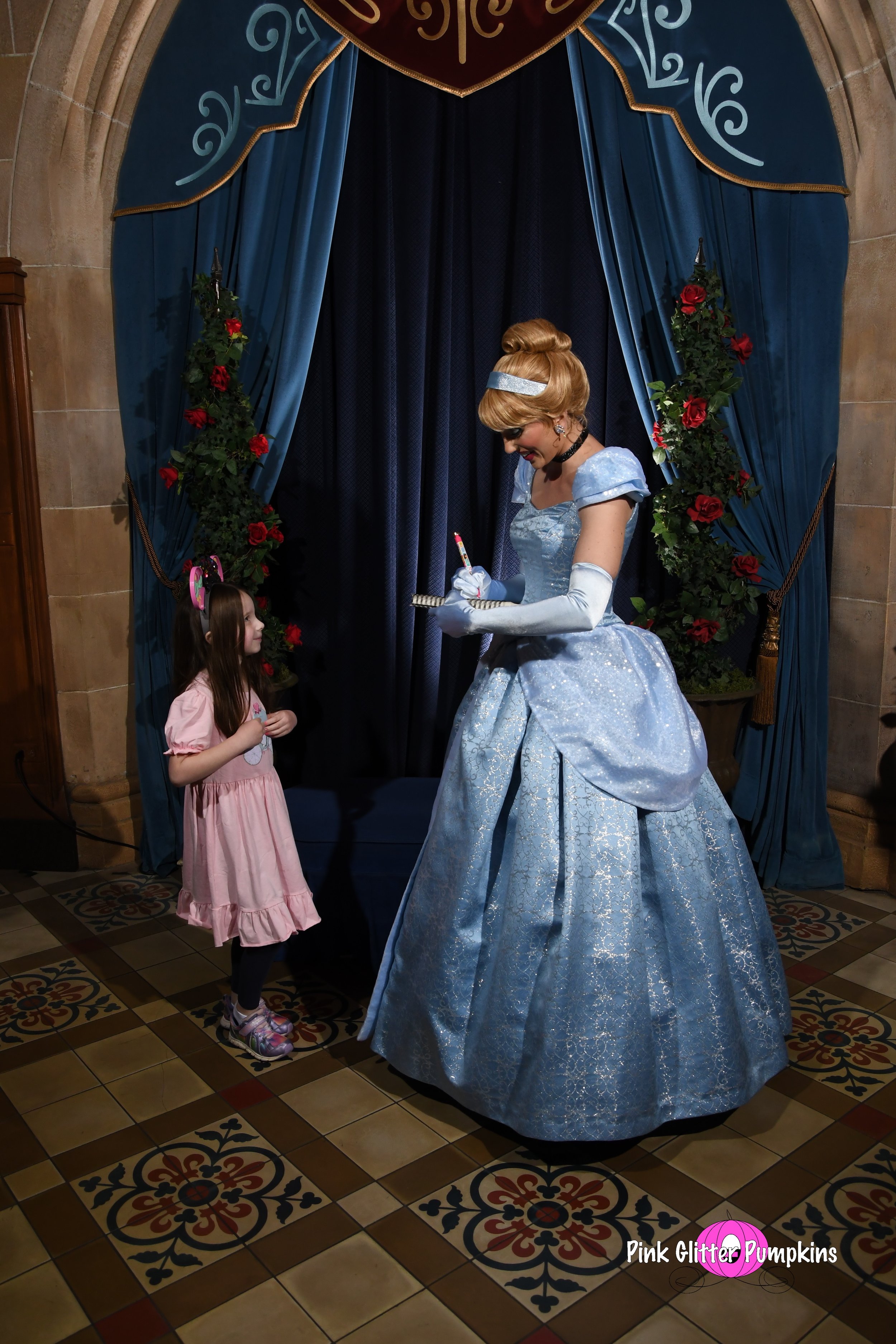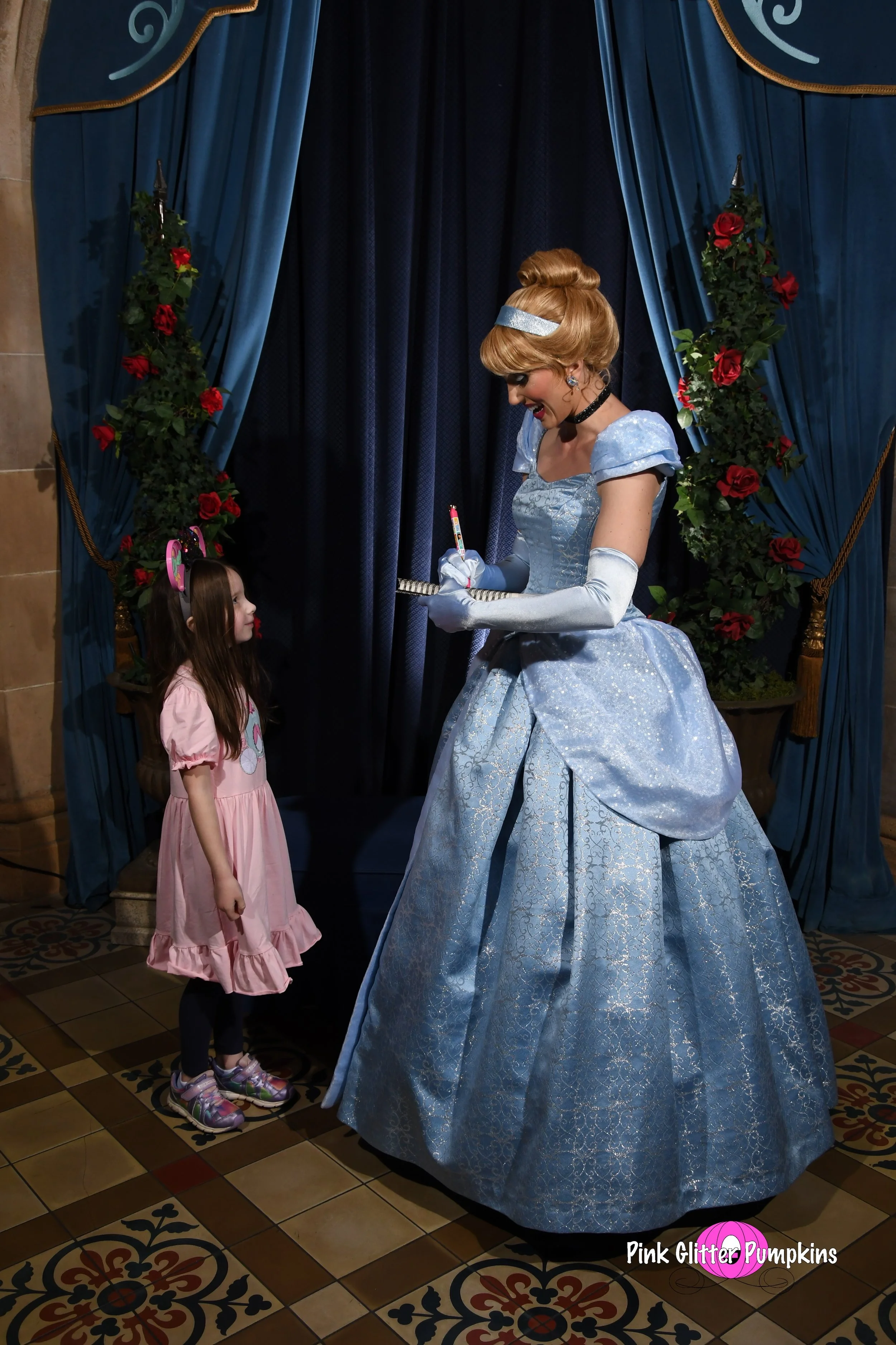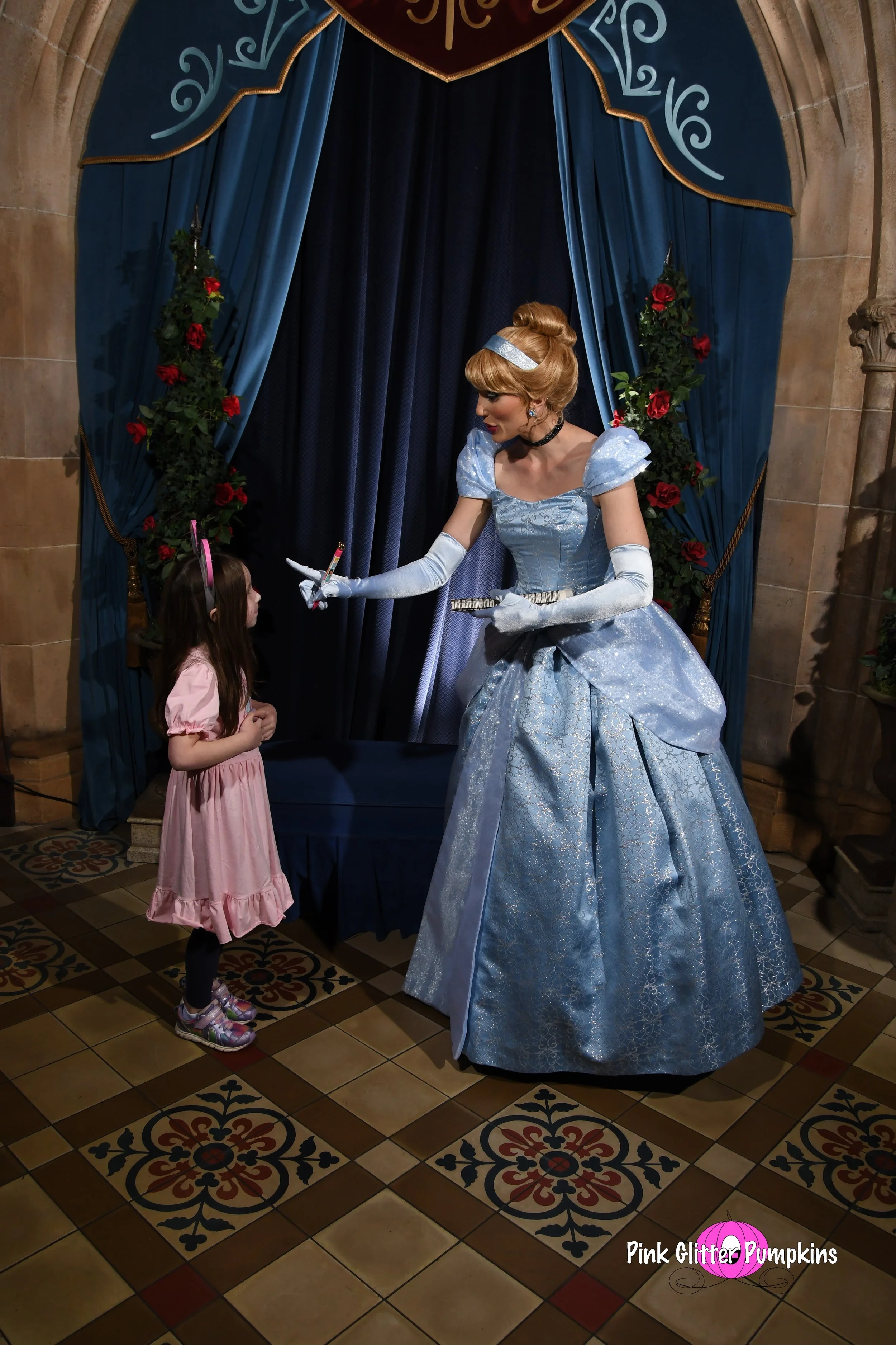 Our reservation was at 10:05, and we were called back at 10:15. We were asked to wait in a line where we would get to meet Cinderella and get our picture made with her. This is the only photo pass photographer you will encounter during this experience, but we did get about 10 pictures. Some with our entire group, and then they took some of just Melody and Cinderella.