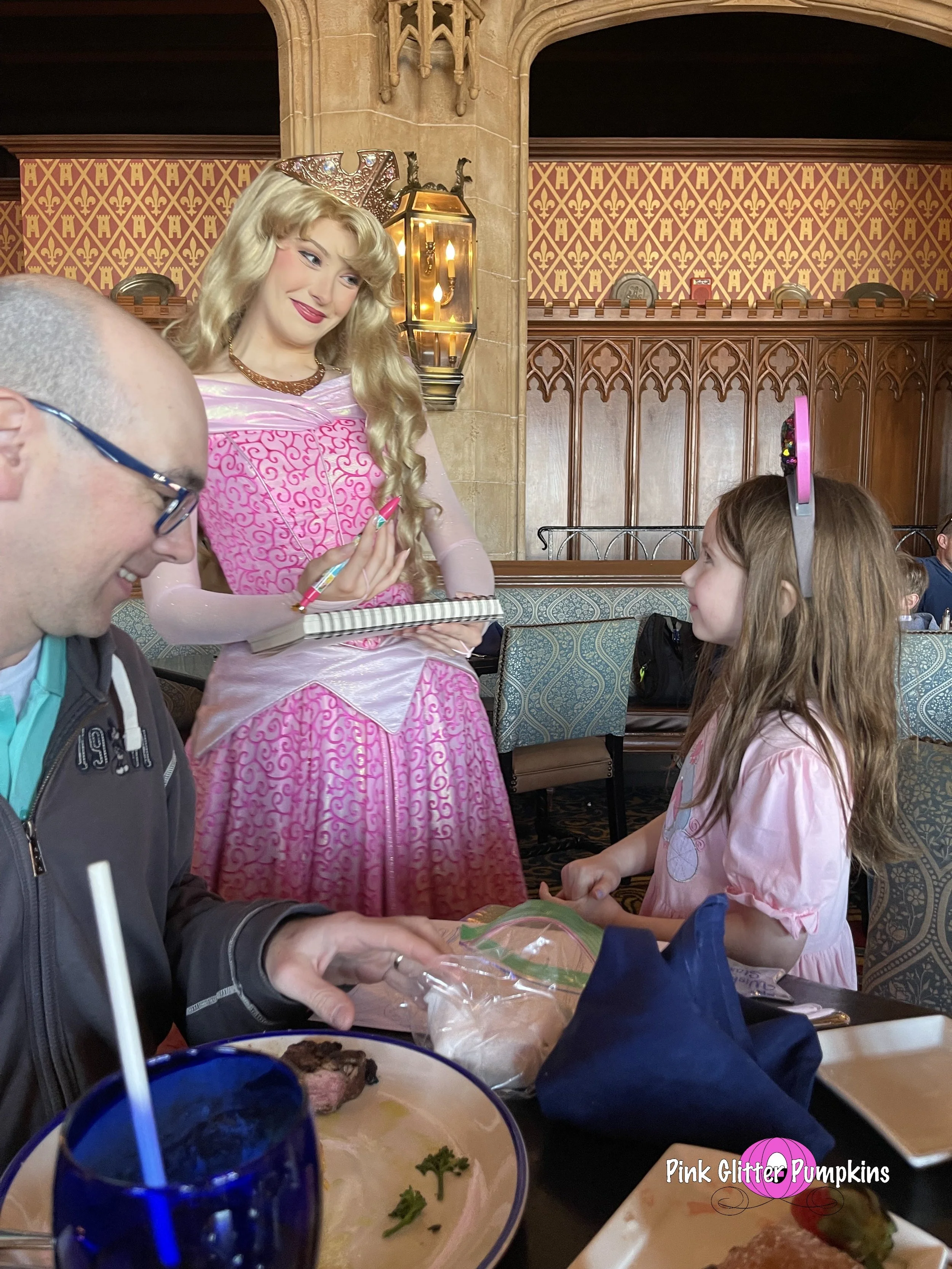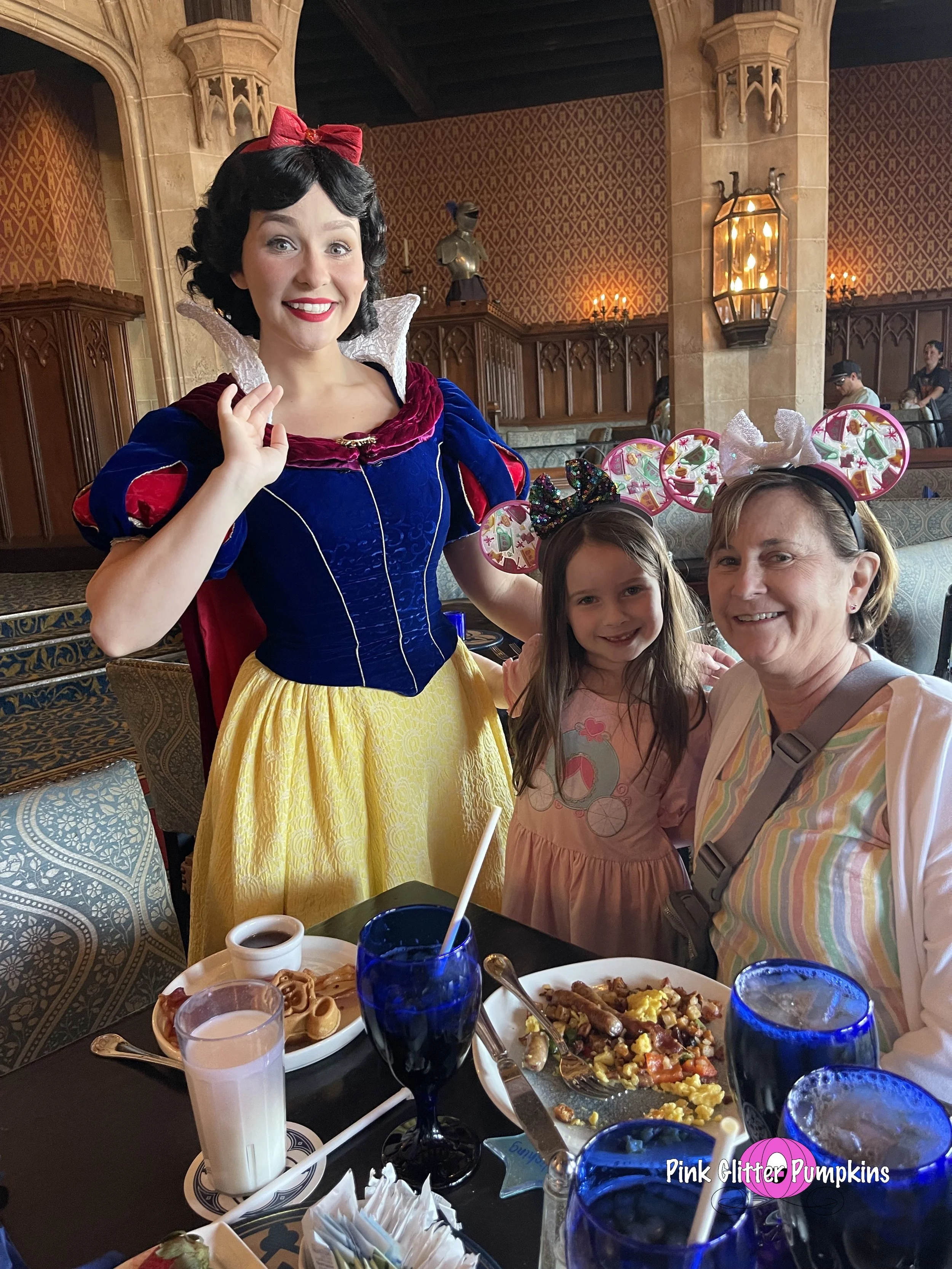 On day three of our March 2023 Disney trip, we tried something new. We had a late breakfast at Cinderella’s Royal table. My hesitation eating here has always been the cost vs the value. Melody doesn’t eat much, so is it worth the price tag for such a place? There was also rumors swirling around then on whether the princess were back dining with guests. But this was one place Vicki really wanted to eat at, so we decided, why not?